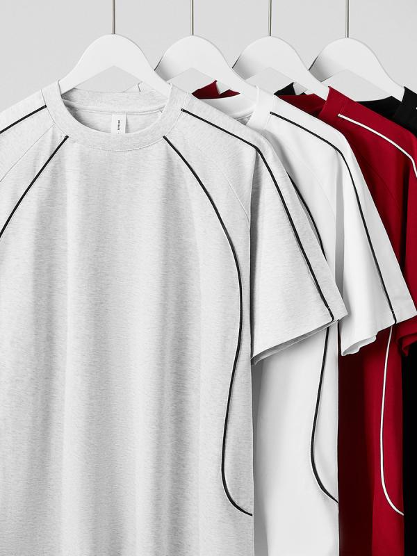 Tシャツ 男性用 国潮 ビッグシルエット ドロップショルダー トップス 綿 ライン 半袖 カットソー 普段使い 部屋着 高見え 電気メッキ加工