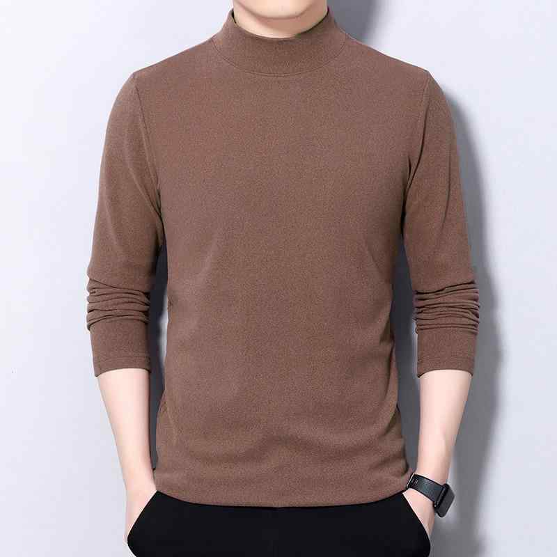 Tシャツ 男性用 裏起毛 トップス 長袖 ハイネック スリム 保温性 ストレッチ性 インナー あったか 秋冬