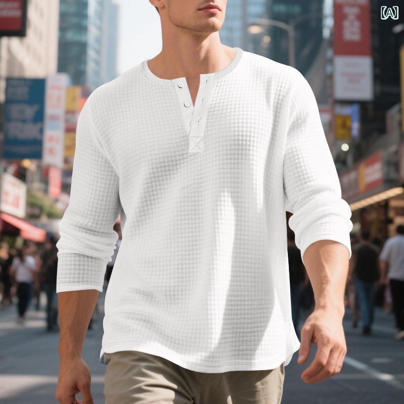 Tシャツ メンズ 男性用 秋冬 長袖 レトロ ヘンリーネック ボタン 重ね着 インナー 格子柄 ジャカード・スタイル: 軽熟休?・?号: SK-335・主な素材: 聚?繊維(ポリエステル)95%・柄: 無地・版型: ゆったり・対象者: 若者・スタイル: プルオーバー・ネックライン: ラウンドネック・袖丈: 長袖・フード: なし・・季節: 冬.秋・誤差範囲: 1-3cm・生地: 化学繊維混紡・シーン: カジュアル・ディテール: 縫い目装飾・カラー: 白, 黒, ワインレッド, アーミーグリーン, カーキ, ライトグレー, ダークグレー, ダークブルー・サイズ: M, L, XL, XXL, XXXL・袖のタイプ: レギュラー・重さ: 約20g・対象年齢: 成人・対象性別: メンズ・カテゴリ: Tシャツ