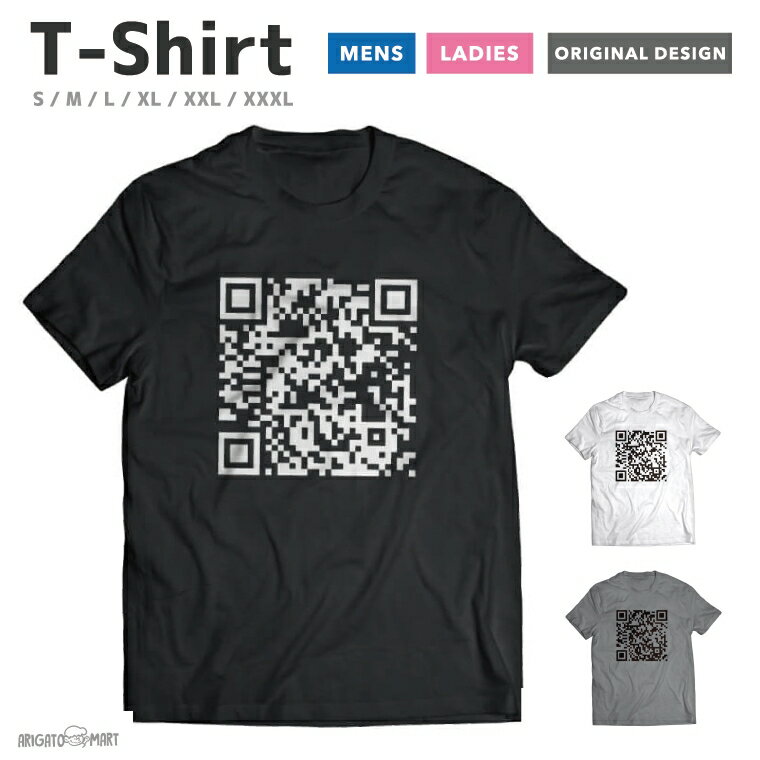 Tシャツ メンズ 半袖 おしゃれ プリント ブラック ホワイト クルーネック 綿100% カジュアル メンズファッション 5.6オンス プリントtシャツ QRコード おもしろ