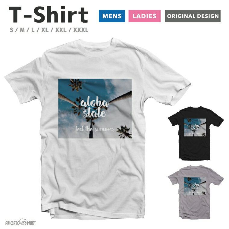 Tシャツ メンズ 半袖 おしゃれ プリント ブラック ホワイト クルーネック 綿100% カジュアル メンズファッション 5.6オンス プリントtシャツ STATE アロハ feel The ヤシの木