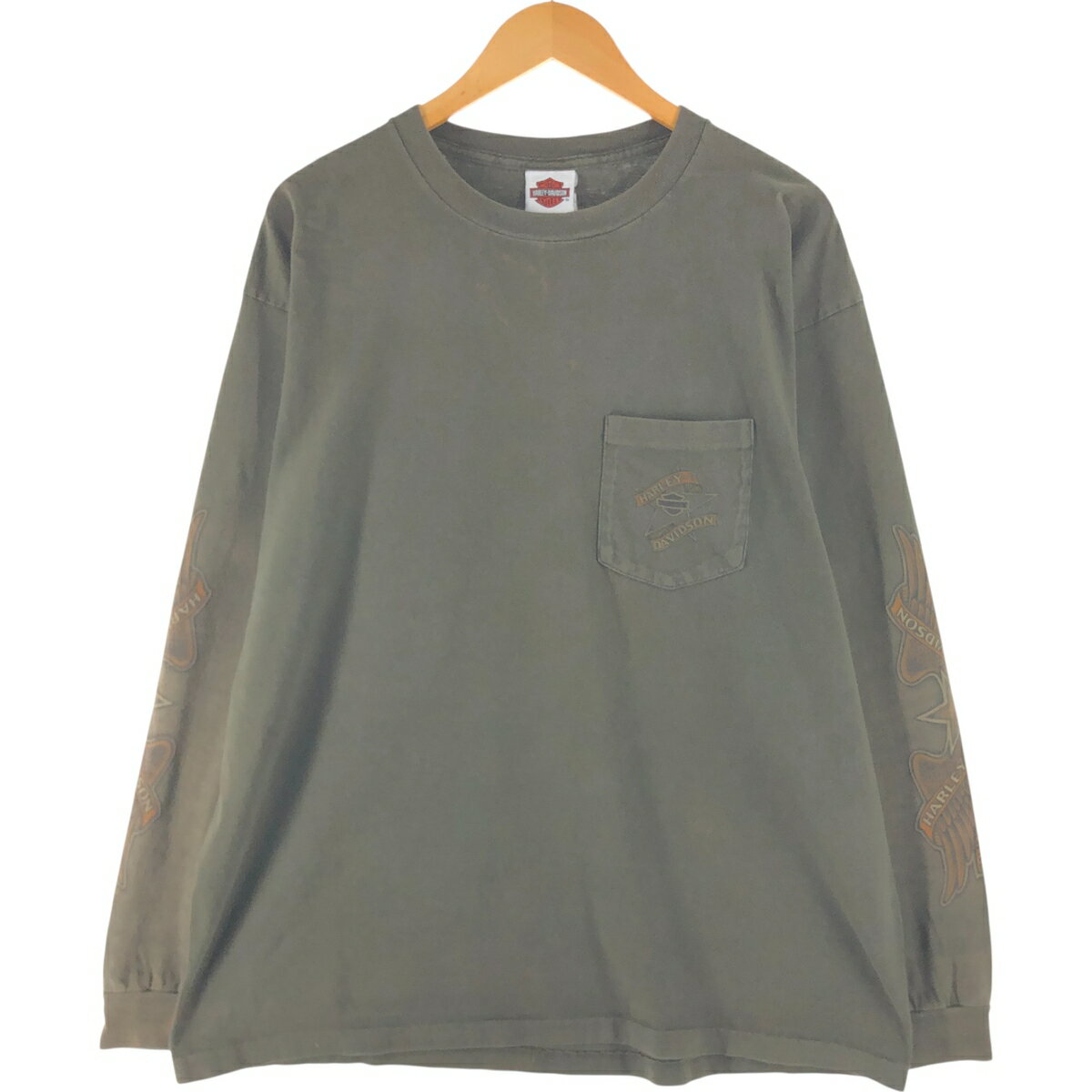 商品詳細 ブランド・Harley-Davidson・ハーレーダビッドソン・ 特徴・クルーネック(丸首)・長袖・シングルステッチ・両面プリント・フェード・ モデル/形状・ロングTシャツ ロンT・ 素材・コットン:100%・ 色・カーキ系・ 柄・プリント・ 生産国・USA製・ 年代・00年代・ サイズ・表記サイズ:X-LARGE・着丈:73.5cm・身幅:61cm・肩幅:57.5cm・袖丈:60.5cm・ コンディション・C・ カテゴリ・メンズ・トップス・Tシャツ・長袖Tシャツ・ 商品番号・eaa564844・ 取扱店・・ スタッフコメントこの商品は、色褪せや変色、色むらを古着ならではのリアルな風合いとして味わえる一着です。Harley-Davidson ロングTシャツ ロンT / 商品番号 eaa564844 USEDですので使用感などございますが、まだまだご愛用していただけます。 古着という事をご理解の上ご注文よろしくお願いします。 【状態追記】 ●全体的に変色・毛羽立ち ●前、両袖・襟周り・中央裾に汚れ ●後、両袖・両腕・襟周り・両背中に汚れ ●内側、両袖に汚れ※状態は当社独自の基準です。 表記サイズ着丈身幅肩幅袖丈 X-LARGE(※着用感、表記サイズは目安です。)73.5cm61cm57.5cm60.5cm ※測定値の若干の誤差はご了承下さい。サイズガイドはこちら ブランドHarley-Davidsonハーレーダビッドソン 特徴クルーネック(丸首) / 長袖 / シングルステッチ / 両面プリント / フェードモデル/形状ロングTシャツ ロンT素材コットン:100%色カーキ系柄プリント生産国USA製年代00年代カテゴリ長袖Tシャツ商品番号eaa564844取扱店 この商品は、色褪せや変色、色むらを古着ならではのリアルな風合いとして味わえる一着です。ハーレーダビッドソンの他の商品を見る長袖Tシャツの他の商品を見る