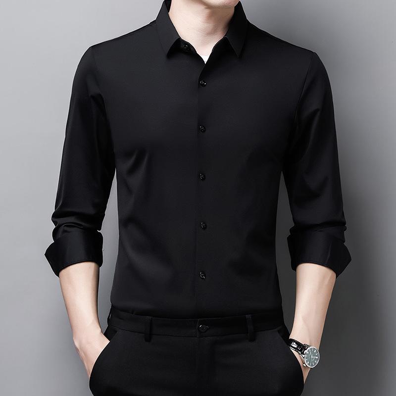 ・カテゴリ: シャツ・スタイル: 韓版・対象: 中年、成人男性・素材: 化繊混紡、ナイロン81.6%・生地機能: 高弾性・柄: 無地・ネックライン: 方襟・袖丈: 長袖・フィット: ルーズ・厚さ: 薄手・ディテール: ステッチ・シーン: カジュアル・色: ブラック、ダークブルー、モスグリーン、ブルーグリーン、ホワイト、ライトブルー、ワインレッド、スカイブルー・サイズ: M、L、XL、2XL、3XL、4XL・シーズン: 春秋・加工: アイロン不要