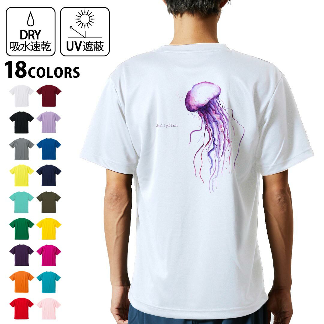 ドライTシャツバックプリントメンズ吸水速乾DRY選べる18カラー!半袖デザイン背中スポーツティーシャツTshirt010966海 くらげ 紫