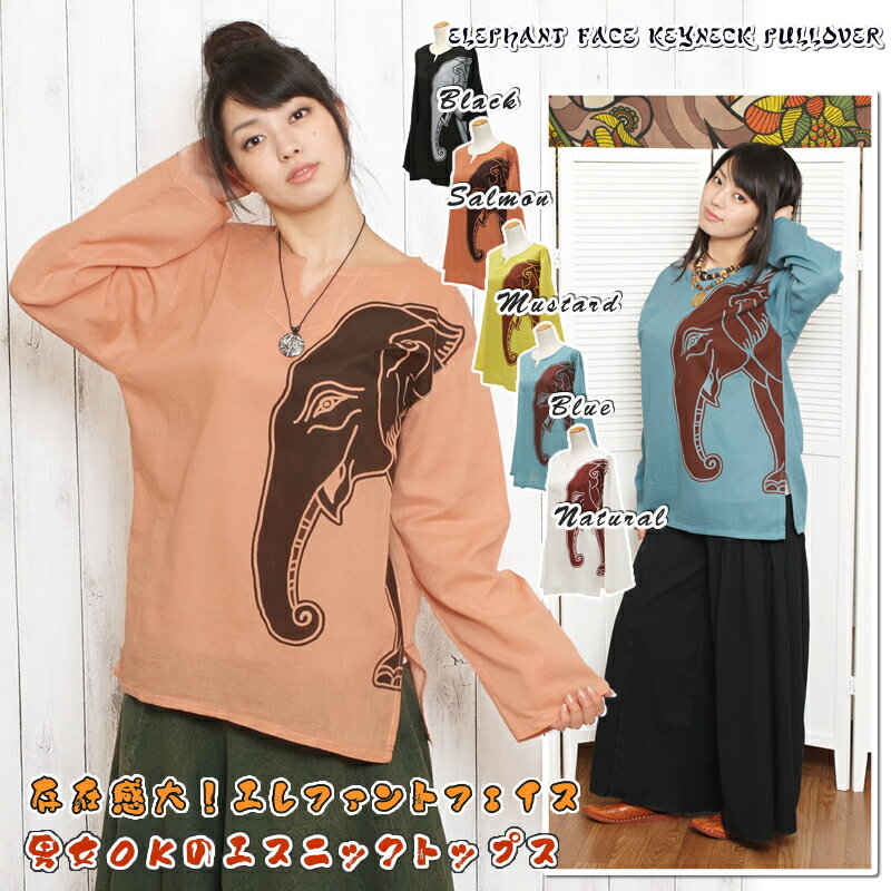 ■サイズ 肩幅50cm、胸囲110cm、袖丈58cm、着丈72cm裾幅56cm、袖ぐり50cm、サイドスリット13cm■写真モデル 身長163cm■材質 コットン■生産国 タイ■フロントサイドに入ったぞうさんの顔のプリントが個性たっぷりな長袖プルオーバーです。ゆったりとした大きめサイズで男女どちらも楽しめるデザイン。薄手コットン生地の軽い着心地で様々なインナーと合わせてオールシーズン活躍してくれそうです。サイズ 肩幅50cm、胸囲110cm、袖丈58cm、着丈72cm裾幅56cm、袖ぐり50cm、サイドスリット13cm 材質 コットン 生産国 タイ 生地の特徴 厚さ/薄手 透け感/あり 裏地/なし モデルサイズ 写真モデル身長163cm お手入れ方法 単品での手洗いをおすすめします。 アイテムインフォ フロントにプリントされた大きなぞうさんフェイスが存在感あふれる長袖プルオーバーです。 ゆったり大きめのサイズとワンサイドにプリントが入ったシンプルなデザインで男女どちらも楽しめそう。 薄手コットン生地の軽い着心地はカットソーなどとの重ね着もOKでオールシーズン楽しめるエスニックトップスです。
