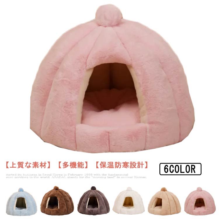 ペットベッペットテントカボチャドームハウスドームペットベッド猫ペットベッドクッション付きベッドドーム型ベッド