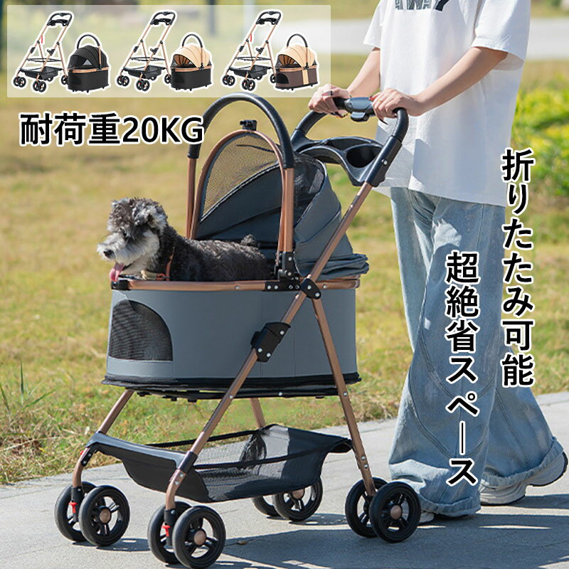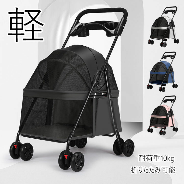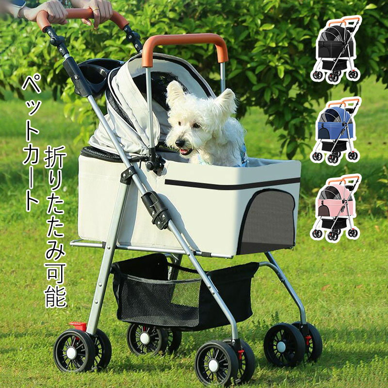【材質】:金属/ポリエステル繊維【カラー】:4色【サイズ】:(約)49*69*97cm(折り畳み:18*84cm)【耐荷重】:10KG注意事項:平置き素人採寸ですので多少の誤差はご容赦下さい。モニタ環境によって、商品の色合いが多少違う場合があります。少々匂いがありますが、置いたままで2-3日くらいになくなりますので、ご安心ください。発送時も簡易梱包の為、お受け取り時にたたみ皺が有ると思いますが、ご了承ください。形や色、サイズ等、商品の仕様は都合により予告なく変更することがございます。ご理解いただきたくお願い申し上げます。完璧をお求めの方はご購入をお控えください。万一在庫切れの場合はご了承ください。【ガイド】小さめ コンパクト!軽量で持ち運びに便利な折りたたみペットカート!小型犬のお散歩やシニアのワンちゃんの介護に便利なカートです。安定した4輪タイプで乗り心地の良くワンちゃんも安心です。簡単に折りたたみができてコンパクトになるので、お出かけ先での収納に困りません!通気性も良く、大きく開閉できるので、出入りも楽々、視界も広々!元気なワンちゃんの脱走転落防止に、飛び出し防止用フック付きです。後輪ストッパー付き、ブレーキは便利で安全です。