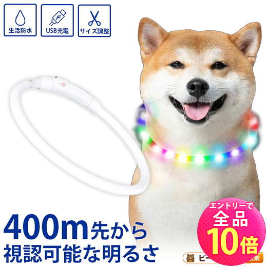 ・メーカー希望小売価格はメーカーサイトに基づいて掲載しています【特徴】 ・輝度83%アップのアップグレードモデル!11個の高輝度LEDを搭載し、暗い夜道でも約400m先から視認可能。 ・3つの点灯モード(早い点滅 / 遅い点滅 / 流星点灯)をボタンで簡単切替。 ・USB充電式&高速充電対応。わずか5分の充電で約90分使用可能。 ・サイズはハサミでカットして調整可能。ペットの首にぴったりフィット。 ・超軽量設計(26g / 31g)&マグネット式スイッチで装着ラクラク。 ・食品級シリコン素材使用。肌にやさしく、生活防水仕様で雨の日も安心。 ・夜間の散歩 / アウトドア / キャンプ / 災害時の目印など におすすめ。 【仕様】 サイズ(約): [30cm]調整範囲 約27cm〜30cm(ハサミでカット可能) [50cm]調整範囲 約26cm〜50cm(ハサミでカット可能) 重量(約): [30cm]26g [50cm]31g 輝度:従来品比 約83%アップ(11個の高輝度LEDランプ搭載)約400m先から視認可能 点灯モード:3モード切替(早い点滅 / 遅い点滅 / 流星点灯 連続使用時間: ・早い点滅:約5時間30分 ・遅い点滅:約5時間 ・流星点灯:約2時間30分 ※5分の充電で約90分使用可能(使用状況による) 充電方式:USB充電式(高速充電対応) 操作方法:マグネット式スイッチ(ワンタッチ装着) 対応対象:猫・小型犬〜中型犬(首周りサイズに応じて) 素材:食品級シリコン素材(無毒・無害) 防水性能:生活防水(雨天使用可)※充電口の浸水不可。入浴・水中使用不可 付属品:USB充電ケーブル ×1 商品コード:COLLAR-35 / COLLAR-502026/03/04 更新