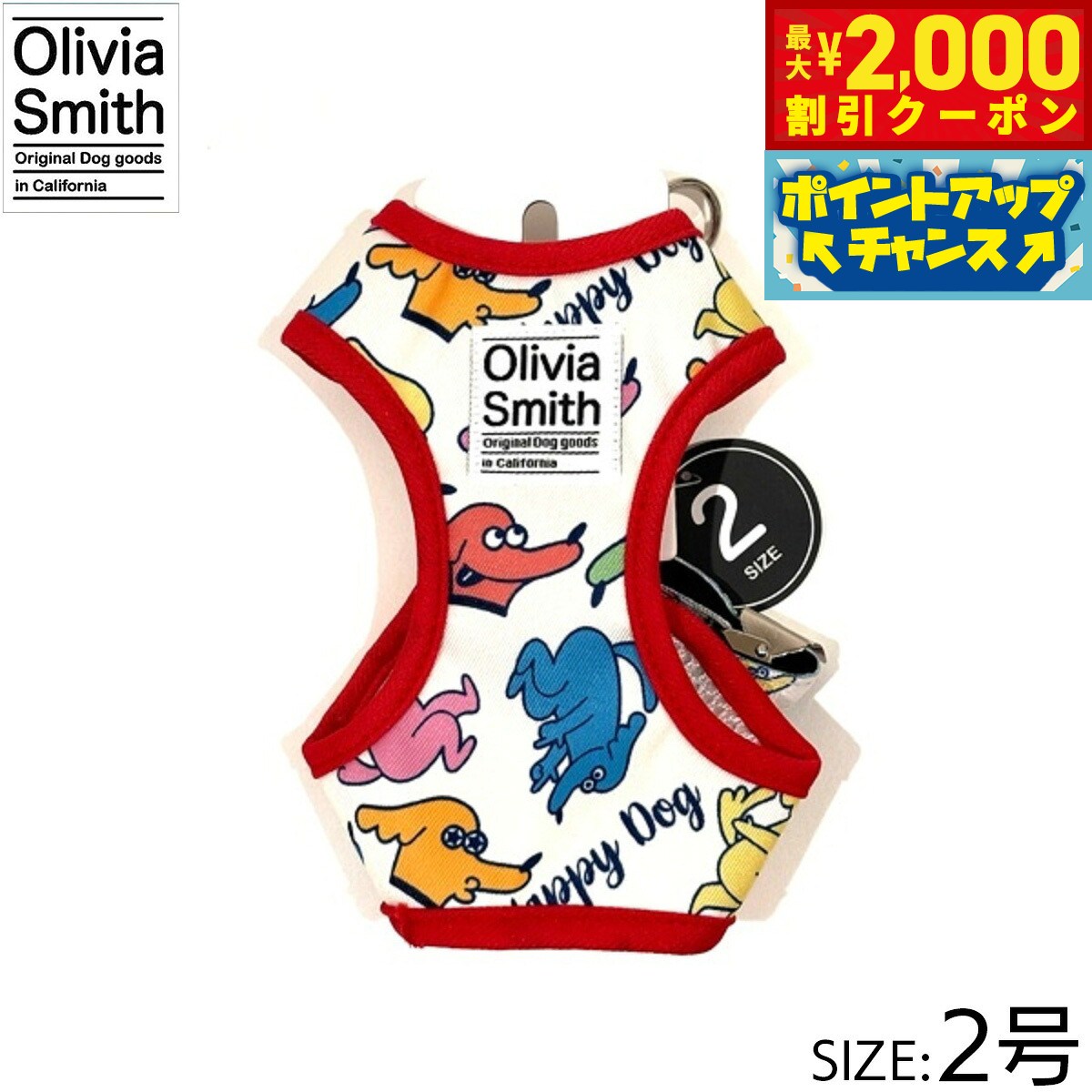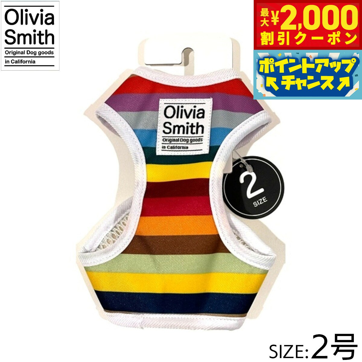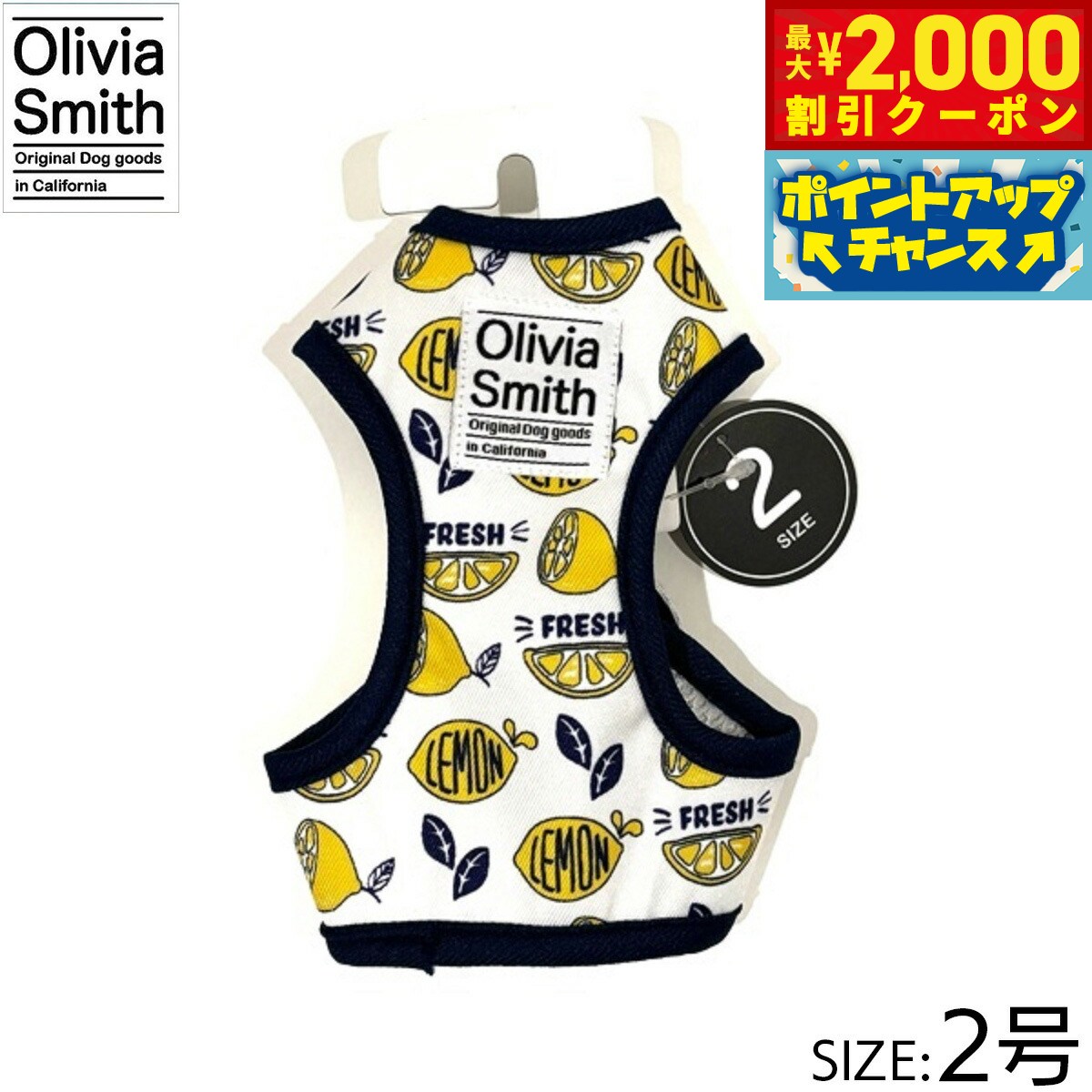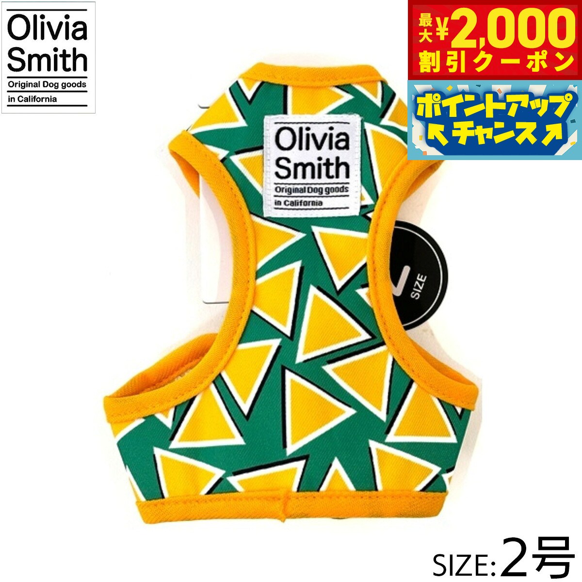プリント柄にはOlivia Smithのデザインを起用し、アイテムも従来のものより機能性のある仕様にリニューアルいたしました。ハーネスは紐タイプのものとベストハーネスの2種類あるので好みに合わせて選んでいただけます。リード・カラー・キャットカラーはオリジナルプリントしたテープの裏にはネオプレーン(柔らかいクッション素材・耐熱性や耐寒性に優れています。)を使用しているので、わんちゃんに優しいアイテムに仕上げています。商品名オリビアスミス ベストハーネスブランドOLIVIA SMITH材質表:ポリエステル・裏:ポリエステル大きさ首回り 18〜23cm、胴回り26〜31cm、適応体重 約2.5kg原産国中国 Olivia Smithはカリフォルニアで活動しているデザイナーです。プリント柄にはOlivia Smithのデザインを起用!メーカー名株式会社ワールド商事オリビアスミス ベストハーネスプリント柄にはOlivia Smithのデザインを起用し、アイテムも従来のものより機能性のある仕様にリニューアルいたしました。ハーネスは紐タイプのものとベストハーネスの2種類あるので好みに合わせて選んでいただけます。リード・カラー・キャットカラーはオリジナルプリントしたテープの裏にはネオプレーン(柔らかいクッション素材・耐熱性や耐寒性に優れています。)を使用しているので、わんちゃんに優しいアイテムに仕上げています。