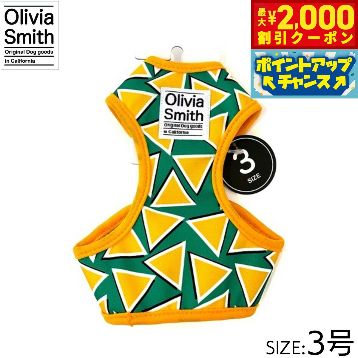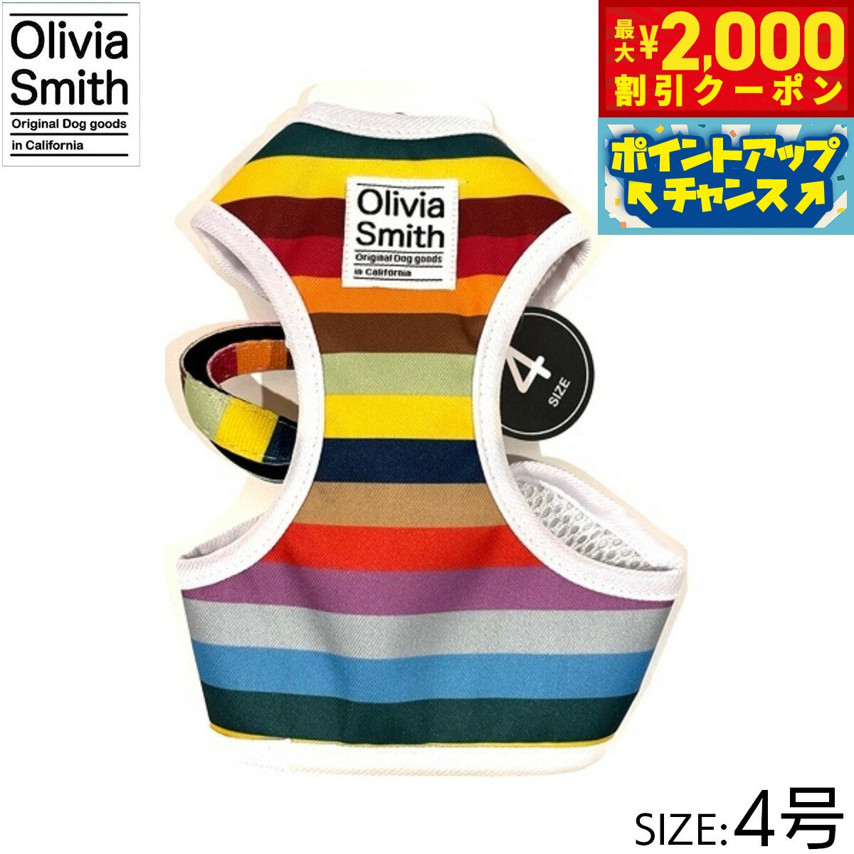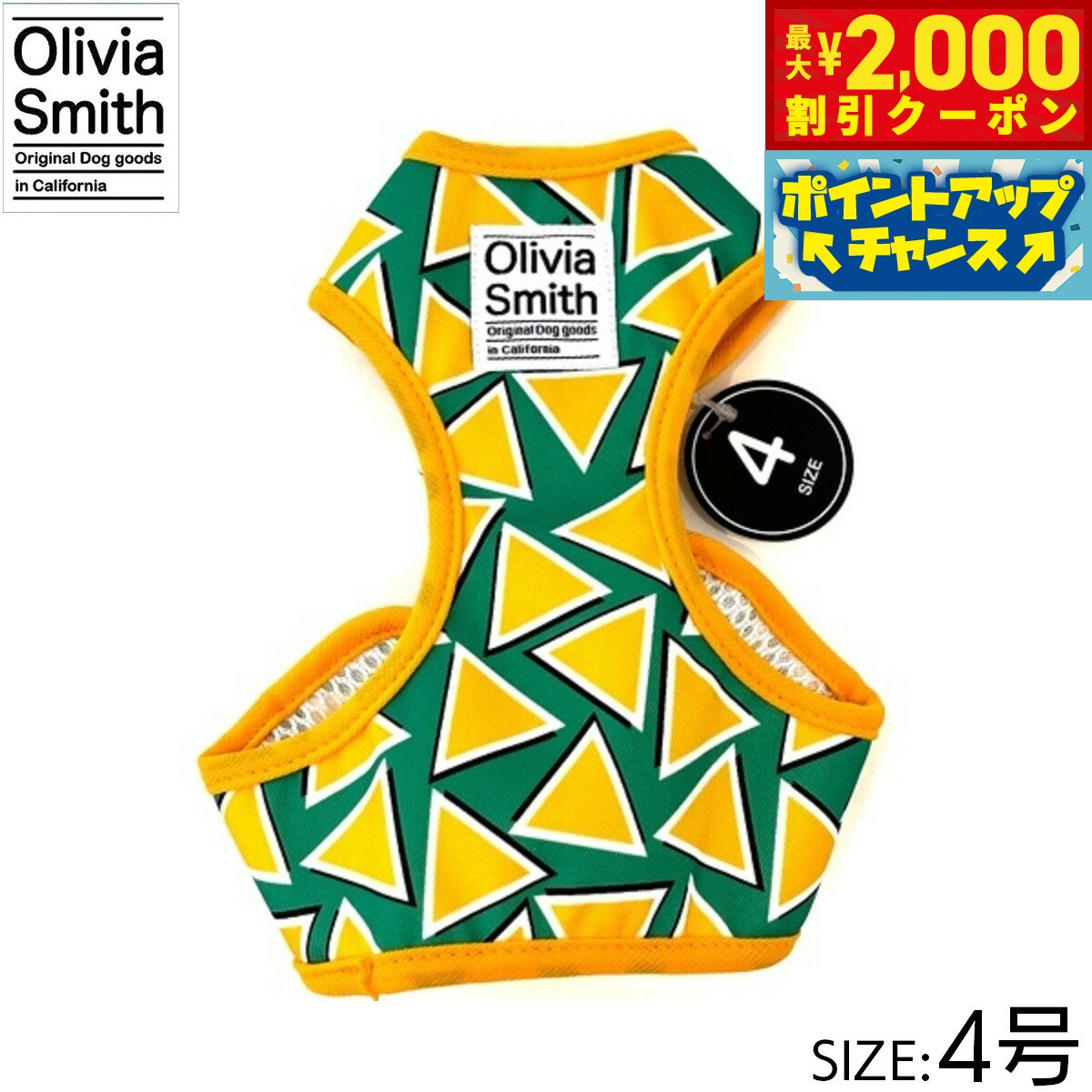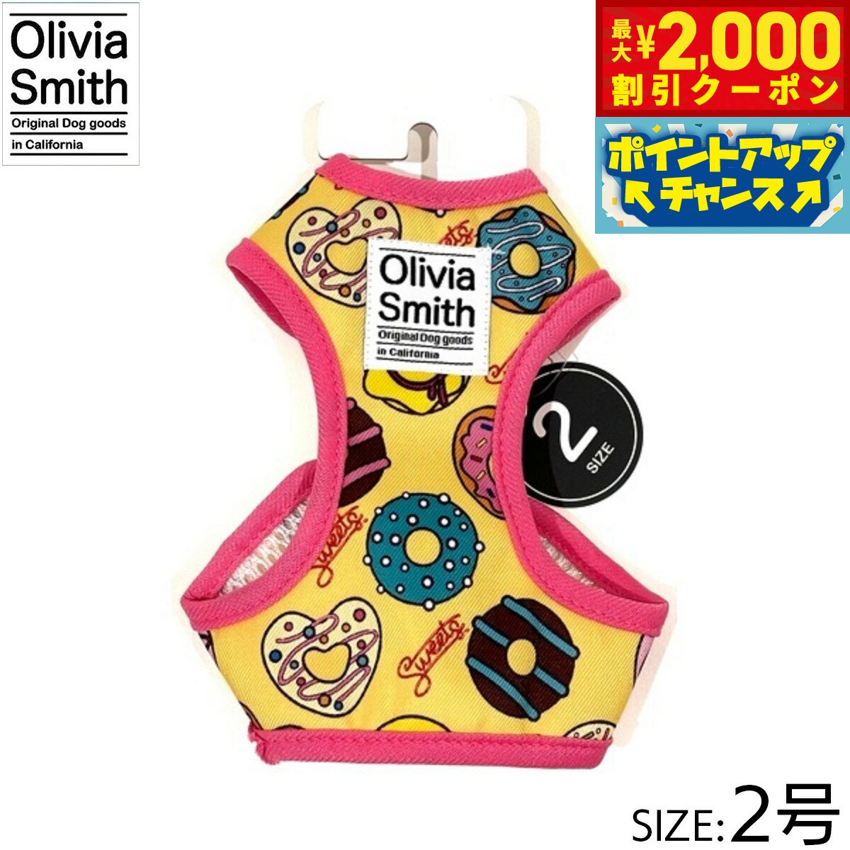 プリント柄にはOlivia Smithのデザインを起用し、アイテムも従来のものより機能性のある仕様にリニューアルいたしました。ハーネスは紐タイプのものとベストハーネスの2種類あるので好みに合わせて選んでいただけます。リード・カラー・キャットカラーはオリジナルプリントしたテープの裏にはネオプレーン(柔らかいクッション素材・耐熱性や耐寒性に優れています。)を使用しているので、わんちゃんに優しいアイテムに仕上げています。商品名オリビアスミス ベストハーネスブランドOLIVIA SMITH材質表:ポリエステル・裏:ポリエステル大きさ首回り 18〜23cm、胴回り26〜31cm、適応体重 約2.5kg原産国中国 Olivia Smithはカリフォルニアで活動しているデザイナーです。プリント柄にはOlivia Smithのデザインを起用!メーカー名株式会社ワールド商事オリビアスミス ベストハーネスプリント柄にはOlivia Smithのデザインを起用し、アイテムも従来のものより機能性のある仕様にリニューアルいたしました。ハーネスは紐タイプのものとベストハーネスの2種類あるので好みに合わせて選んでいただけます。リード・カラー・キャットカラーはオリジナルプリントしたテープの裏にはネオプレーン(柔らかいクッション素材・耐熱性や耐寒性に優れています。)を使用しているので、わんちゃんに優しいアイテムに仕上げています。