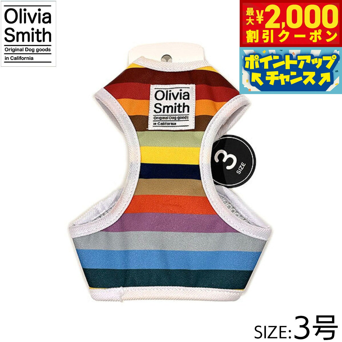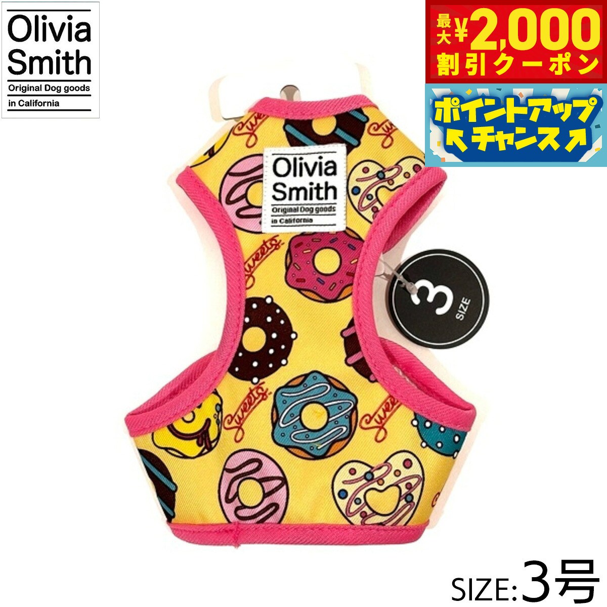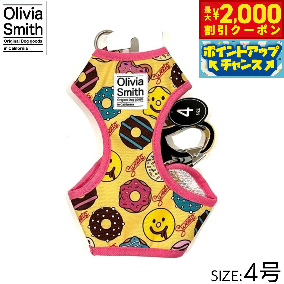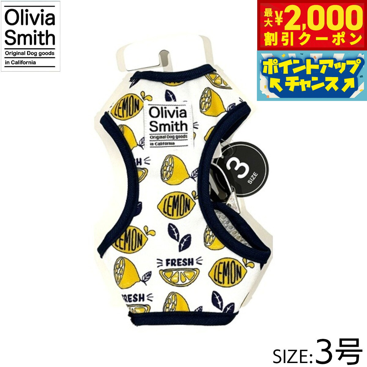 プリント柄にはOlivia Smithのデザインを起用し、アイテムも従来のものより機能性のある仕様にリニューアルいたしました。ハーネスは紐タイプのものとベストハーネスの2種類あるので好みに合わせて選んでいただけます。リード・カラー・キャットカラーはオリジナルプリントしたテープの裏にはネオプレーン(柔らかいクッション素材・耐熱性や耐寒性に優れています。)を使用しているので、わんちゃんに優しいアイテムに仕上げています。商品名オリビアスミス ベストハーネスブランドOLIVIA SMITH材質表:ポリエステル・裏:ポリエステル大きさ首回り 18〜23cm、胴回り26〜31cm、適応体重 約2.5kg原産国中国 Olivia Smithはカリフォルニアで活動しているデザイナーです。プリント柄にはOlivia Smithのデザインを起用!メーカー名株式会社ワールド商事オリビアスミス ベストハーネスプリント柄にはOlivia Smithのデザインを起用し、アイテムも従来のものより機能性のある仕様にリニューアルいたしました。ハーネスは紐タイプのものとベストハーネスの2種類あるので好みに合わせて選んでいただけます。リード・カラー・キャットカラーはオリジナルプリントしたテープの裏にはネオプレーン(柔らかいクッション素材・耐熱性や耐寒性に優れています。)を使用しているので、わんちゃんに優しいアイテムに仕上げています。