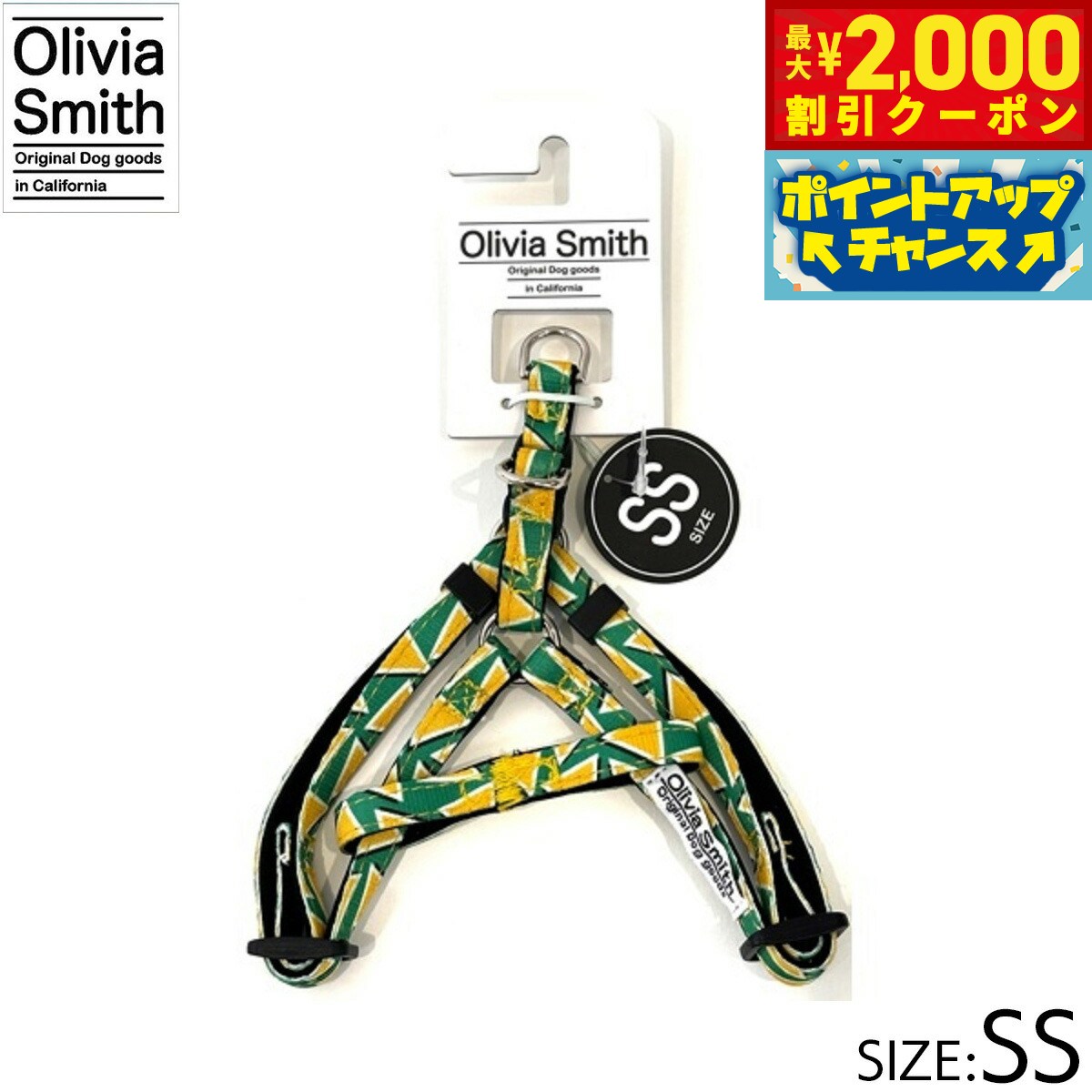 プリント柄にはOlivia Smithのデザインを起用し、アイテムも従来のものより機能性のある仕様にリニューアルいたしました。ハーネスは紐タイプのものとベストハーネスの2種類あるので好みに合わせて選んでいただけます。リード・カラー・キャットカラーはオリジナルプリントしたテープの裏にはネオプレーン(柔らかいクッション素材・耐熱性や耐寒性に優れています。)を使用しているので、わんちゃんに優しいアイテムに仕上げています。商品名オリビアスミス ハーネスブランドOLIVIA SMITH材質表:ポリエステル・裏:ネオプレーン大きさ対応胴回り 46〜63cm、幅 2.0cm原産国中国 Olivia Smithはカリフォルニアで活動しているデザイナーです。プリント柄にはOlivia Smithのデザインを起用!メーカー名株式会社ワールド商事オリビアスミス ハーネスプリント柄にはOlivia Smithのデザインを起用し、アイテムも従来のものより機能性のある仕様にリニューアルいたしました。ハーネスは紐タイプのものとベストハーネスの2種類あるので好みに合わせて選んでいただけます。リード・カラー・キャットカラーはオリジナルプリントしたテープの裏にはネオプレーン(柔らかいクッション素材・耐熱性や耐寒性に優れています。)を使用しているので、わんちゃんに優しいアイテムに仕上げています。