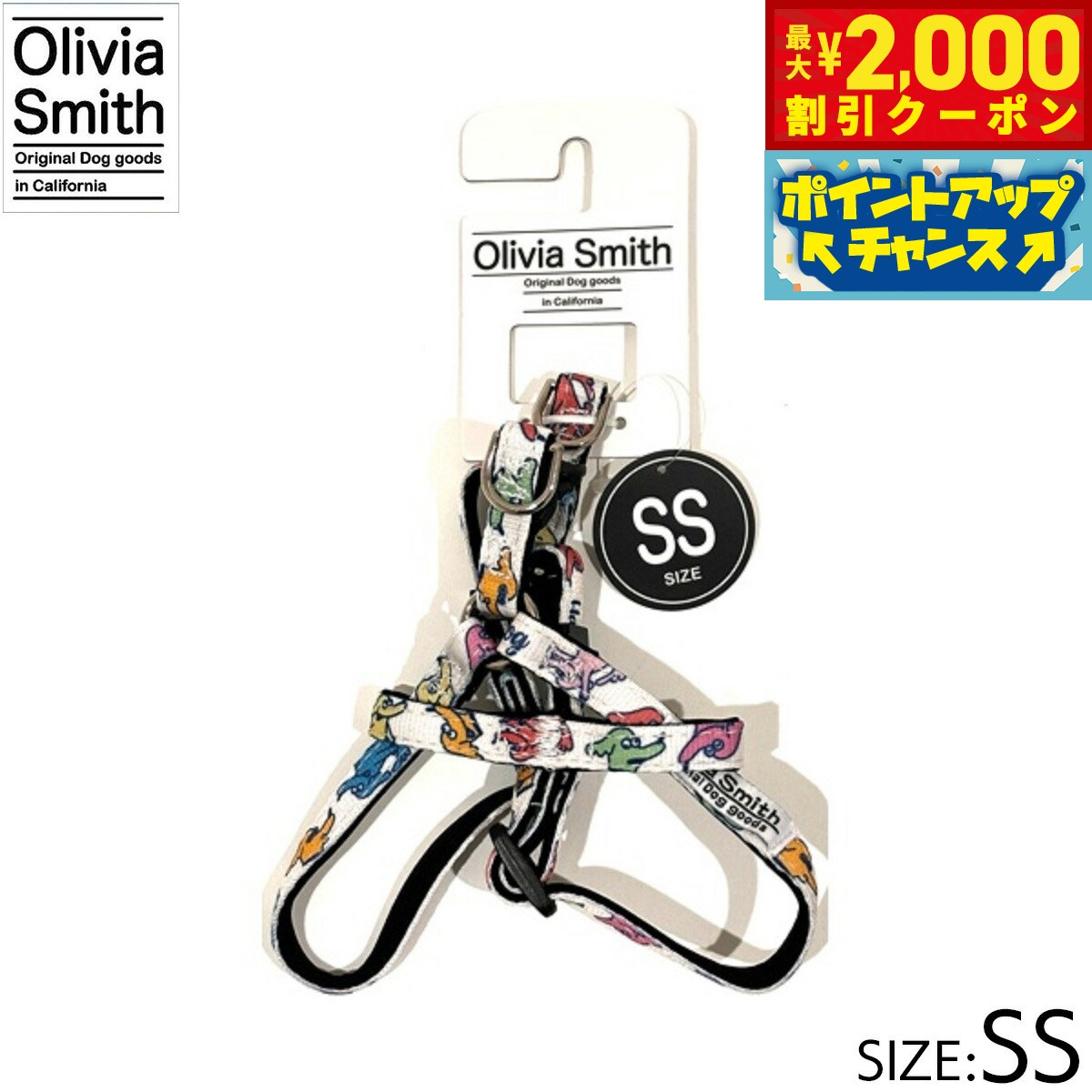 プリント柄にはOlivia Smithのデザインを起用し、アイテムも従来のものより機能性のある仕様にリニューアルいたしました。ハーネスは紐タイプのものとベストハーネスの2種類あるので好みに合わせて選んでいただけます。リード・カラー・キャットカラーはオリジナルプリントしたテープの裏にはネオプレーン(柔らかいクッション素材・耐熱性や耐寒性に優れています。)を使用しているので、わんちゃんに優しいアイテムに仕上げています。商品名オリビアスミス ハーネスブランドOLIVIA SMITH材質表:ポリエステル・裏:ネオプレーン大きさ対応胴回り 37〜51cm、幅 1.5cm原産国中国 Olivia Smithはカリフォルニアで活動しているデザイナーです。プリント柄にはOlivia Smithのデザインを起用!メーカー名株式会社ワールド商事オリビアスミス ハーネスプリント柄にはOlivia Smithのデザインを起用し、アイテムも従来のものより機能性のある仕様にリニューアルいたしました。ハーネスは紐タイプのものとベストハーネスの2種類あるので好みに合わせて選んでいただけます。リード・カラー・キャットカラーはオリジナルプリントしたテープの裏にはネオプレーン(柔らかいクッション素材・耐熱性や耐寒性に優れています。)を使用しているので、わんちゃんに優しいアイテムに仕上げています。