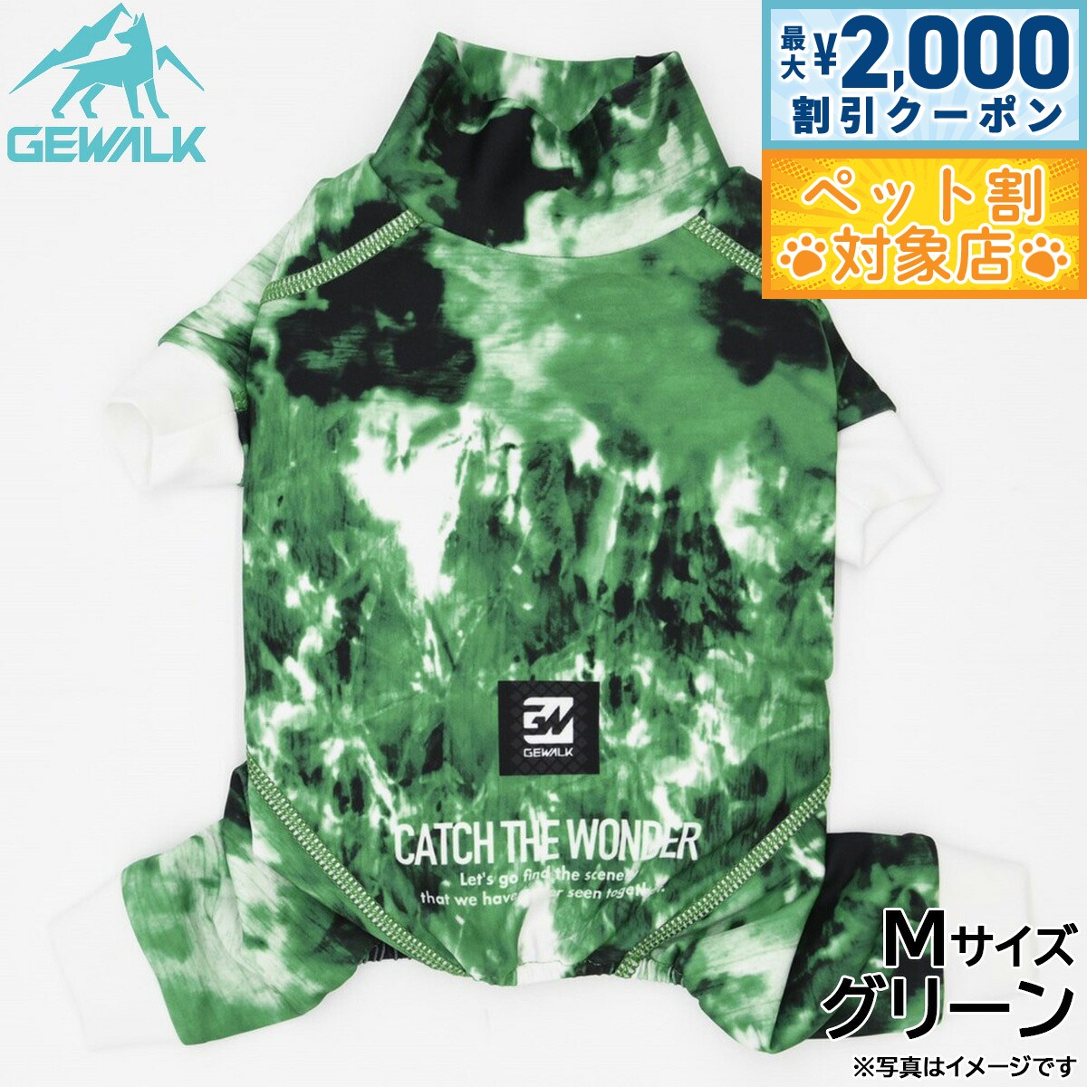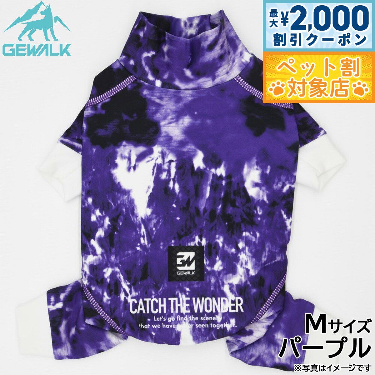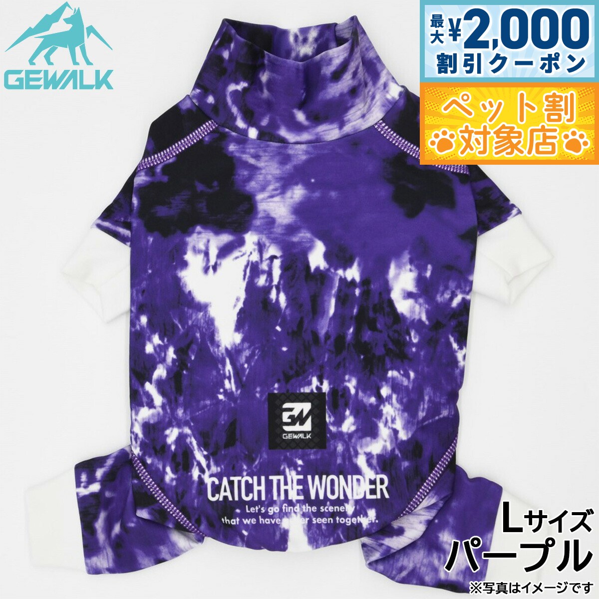 高機能オールシーズンモデルのロンパース商品名ジウォーク GEWALK マーブル プリント プロテクト ストレッチ ロンパースブランドGEWALK材質ポリエステル78%、ポリウレタン22%生産国ベトナム 夏は涼しく、冬はあったかい高機能オールシーズンモデルです。ウェア全体に撥水加工が施されており、水や泥などの汚れから愛犬をプロテクト!「4WAYスーパーストレッチ+フラットシーマ縫製」を採用し、縫い目が平でゴロつかない着心地と抜群のフィット感により動きやすさを実現しました。最高クラスの紫外線遮蔽率であるUPF50+を実現し、夕暮れ時でもしっかり視認できるストレッチマルチリフレクターにより安全性も追求!雨の日や雪中でのお散歩はもちろん、海や川、山やドッグランなど様々なアウトドアシーンで大活躍のアクティブロンパースです。【大型】適応サイズ:5XL、背丈:70cm、胸囲:92〜96cm、首回り:57〜61cm【使用上のご注意】・火気に近づけたり、高温になる場所に保管しないで下さい。・洗濯機・乾燥機は避け、必ず手洗い・自然乾燥をして下さい。・洗剤を使用して洗う際には中性洗剤を使用し、漂白剤の使用は避けて下さい。・色落ち色うつりする恐れがありますので他の物と一緒に洗わず、必ず単品洗いをして下さい。・長時間水に浸けておくと色が落ちる恐れがあります。タンブラー乾燥は縮む恐れがありますのでお避け下さい。・プリント・マーク部分のもみ洗いとアイロンはお避け下さい。・使用頻度により破損や、装飾品が取れる場合があります。・破損個所が見られた際には、誤飲の原因にもなりますので、すぐに使用を中止して下さい。・万一飲み込んだ場合にはすぐに取り出し、獣医師にご相談下さい。メーカー名株式会社ハヤブサジウォーク GEWALK マーブル プリント プロテクト ストレッチ ロンパース高機能オールシーズンモデルのロンパース