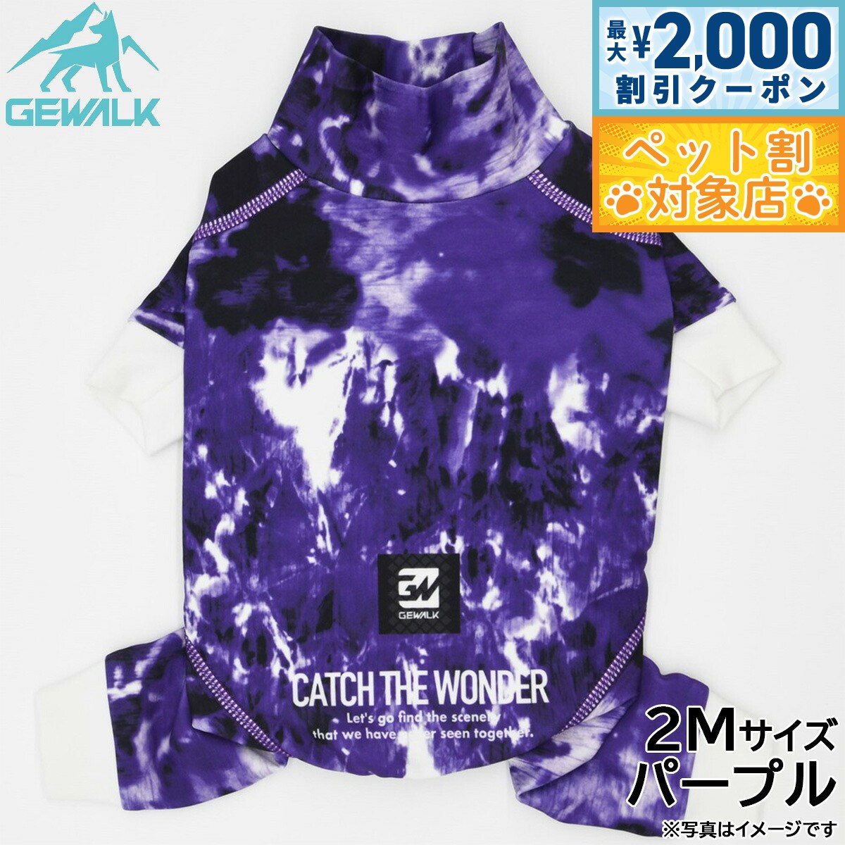 高機能オールシーズンモデルのロンパース商品名ジウォーク GEWALK マーブル プリント プロテクト ストレッチ ロンパースブランドGEWALK材質ポリエステル78%、ポリウレタン22%生産国ベトナム 夏は涼しく、冬はあったかい高機能オールシーズンモデルです。ウェア全体に撥水加工が施されており、水や泥などの汚れから愛犬をプロテクト!「4WAYスーパーストレッチ+フラットシーマ縫製」を採用し、縫い目が平でゴロつかない着心地と抜群のフィット感により動きやすさを実現しました。最高クラスの紫外線遮蔽率であるUPF50+を実現し、夕暮れ時でもしっかり視認できるストレッチマルチリフレクターにより安全性も追求!雨の日や雪中でのお散歩はもちろん、海や川、山やドッグランなど様々なアウトドアシーンで大活躍のアクティブロンパースです。【小型】適応サイズ:2M、背丈:31cm、胸囲:44〜48cm、首回り:26〜30cm【使用上のご注意】・火気に近づけたり、高温になる場所に保管しないで下さい。・洗濯機・乾燥機は避け、必ず手洗い・自然乾燥をして下さい。・洗剤を使用して洗う際には中性洗剤を使用し、漂白剤の使用は避けて下さい。・色落ち色うつりする恐れがありますので他の物と一緒に洗わず、必ず単品洗いをして下さい。・長時間水に浸けておくと色が落ちる恐れがあります。タンブラー乾燥は縮む恐れがありますのでお避け下さい。・プリント・マーク部分のもみ洗いとアイロンはお避け下さい。・使用頻度により破損や、装飾品が取れる場合があります。・破損個所が見られた際には、誤飲の原因にもなりますので、すぐに使用を中止して下さい。・万一飲み込んだ場合にはすぐに取り出し、獣医師にご相談下さい。メーカー名株式会社ハヤブサジウォーク GEWALK マーブル プリント プロテクト ストレッチ ロンパース高機能オールシーズンモデルのロンパース