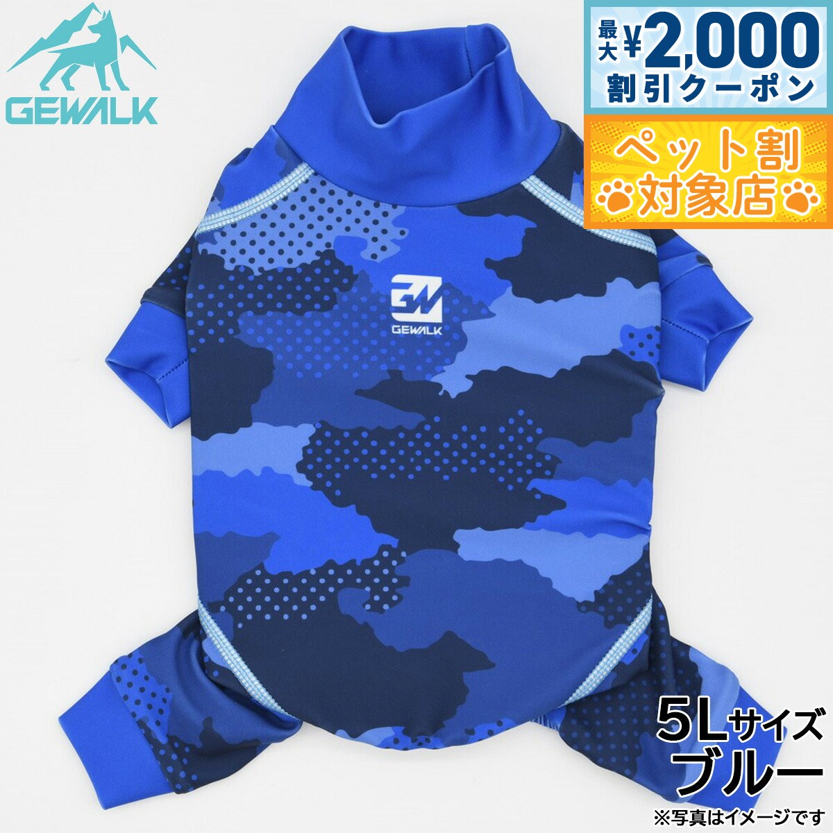 高機能オールシーズンモデルのロンパース商品名ジウォーク GEWALK デジタル カモフラ プリント プロテクト ストレッチ ロンパースブランドGEWALK材質ポリエステル78%、ポリウレタン22%生産国ベトナム 夏は涼しく、冬はあったかい高機能オールシーズンモデルです。ウェア全体に撥水加工が施されており、水や泥などの汚れから愛犬をプロテクト!「4WAYスーパーストレッチ+フラットシーマ縫製」を採用し、縫い目が平でゴロつかない着心地と抜群のフィット感により動きやすさを実現しました。最高クラスの紫外線遮蔽率であるUPF50+を実現し、夕暮れ時でもしっかり視認できるストレッチマルチリフレクターにより安全性も追求!雨の日や雪中でのお散歩はもちろん、海や川、山やドッグランなど様々なアウトドアシーンで大活躍のアクティブロンパースです。【大型】適応サイズ:5XL、背丈:70cm、胸囲:92〜96cm、首回り:57〜61cm【使用上のご注意】・火気に近づけたり、高温になる場所に保管しないで下さい。・洗濯機・乾燥機は避け、必ず手洗い・自然乾燥をして下さい。・洗剤を使用して洗う際には中性洗剤を使用し、漂白剤の使用は避けて下さい。・色落ち色うつりする恐れがありますので他の物と一緒に洗わず、必ず単品洗いをして下さい。・長時間水に浸けておくと色が落ちる恐れがあります。タンブラー乾燥は縮む恐れがありますのでお避け下さい。・プリント・マーク部分のもみ洗いとアイロンはお避け下さい。・使用頻度により破損や、装飾品が取れる場合があります。・破損個所が見られた際には、誤飲の原因にもなりますので、すぐに使用を中止して下さい。・万一飲み込んだ場合にはすぐに取り出し、獣医師にご相談下さい。メーカー名株式会社ハヤブサジウォーク GEWALK デジタル カモフラ プリント プロテクト ストレッチ ロンパース高機能オールシーズンモデルのロンパース