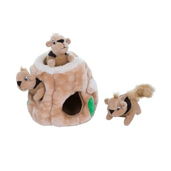 ●3匹のキューキュー鳴るリスを切り株の中に入れて遊ぶことで、愛犬の狩猟本能を刺激します。●簡易的な梱包で地球環境への配慮をしています。・原材料: ポリエステル