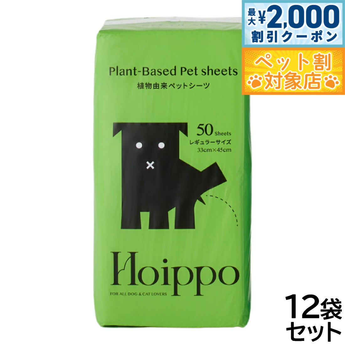 環境に配慮した植物由来の原材料を使用。コットンのような肌触りで、ペットにも環境にも優しいペットシーツです。コンポストで生分解が可能な植物由来のPLA樹脂をバックフィルムに採用。表面の不織布にも植物性原料を採用し、吸収材以外の植物由来原料化を実現しました。パッケージもPLA樹脂を使用しています。薄型なのに、高分子ポリマーがおしっこをしっかり吸収!逆戻りも防ぎます。シートには特殊なエンボス加工を施しました。白色シートを採用することで、わんちゃんのおしっこの色が分かりやすく健康管理に役立ちます。裏面の四隅にずれ防止用のテープが付いています。トレーを使用しなくてもズレにくいため、様々なシーンでご活用いただけます。ペットシーツに植物由来原料を使用することで、使いやすさを保ちながら環境に配慮した製品になっています。商品名Hoippo(ホイッポ) 植物由来ペットシーツブランドHoippo材質表面材:不織布(植物由来)/吸収材:綿状パルプ、高分子吸収材、吸収紙/防水材:PLA樹脂/結合材:ロジン樹脂/外装素材:PLA樹脂(塗料は石油由来)大きさ33×45cm(シーツ1枚)原産国中国 環境に配慮した植物由来の原材料を使用。コットンのような肌触りで、ペットにも環境にも優しいペットシーツです。植物由来原料使用:コンポストで生分解が可能な植物由来のPLA樹脂(※)をバックフィルムに採用。表面の不織布にも植物性原料を採用し、吸収材以外の植物由来原料化を実現しました。また、パッケージもPLA樹脂を使用しています。※PLA樹脂とは「Poly-Lactic Acid」の略語で、日本語でいうと「ポリ乳酸」と呼ばれる、トウモロコシやじゃがいもなどの植物を原料とする樹脂材料のことです。コンポスト環境下での土中の微生物によって分解され、土に還る(生分解性)素材として近年注目されています。高吸収薄型タイプ:薄型なのに、高分子ポリマーがおしっこをしっかり吸収!逆戻りも防ぎます。特殊加工&白色シート:シートには特殊なエンボス加工を施しました。また、白色シートを採用することで、わんちゃんのおしっこの色が分かりやすく健康管理に役立ちます。ずれ防止テープ付き:裏面の四隅にずれ防止用のテープが付いています。トレーを使用しなくてもズレにくいため、様々なシーンでご活用いただけます。CO2排出量の削減:植物由来原料を焼却する際のCO2排出量は、数あるプラスチックの中でも最小レベルと言われています。ペットシーツに植物由来原料を使用することで、使いやすさを保ちながら環境に配慮した製品になっています。【注意事項】●用途以外に使用しないでください。●不織布の面を上にして敷いてください。●シーツはハサミ等で切らずにそのままご使用ください。ハサミで切ると中身のこぼれや漏れの原因になります。●汚れても構わない平らな場所に置いてご使用ください。●高温多湿を避け直射日光の当たらない場所で保管してください。●火気の近くでは使用しないでください。●本製品は食べられません。万が一飲み込んでしまった場合は医師または獣医師に相談してください。●伸縮性のある素材を使用しているため表示寸法と若干異なる場合があります。●商品の仕様は予告なく変更することがあります。※生分解性100%の製品ではありません。※本製品は燃えるゴミに捨ててください。※本製品は生分解率100%ではありません。トイレに流したり土や海など自然な環境下へ絶対に廃棄せずお住まいの自治体に従って処理してください。※使用後は汚れた面を内側にし小さく丸めてから処理してください。対象ペット:犬メーカー名ヘンリー株式会社Hoippo(ホイッポ) 植物由来ペットシーツ環境に配慮した植物由来の原材料を使用。コットンのような肌触りで、ペットにも環境にも優しいペットシーツです。コンポストで生分解が可能な植物由来のPLA樹脂をバックフィルムに採用。表面の不織布にも植物性原料を採用し、吸収材以外の植物由来原料化を実現しました。パッケージもPLA樹脂を使用しています。薄型なのに、高分子ポリマーがおしっこをしっかり吸収!逆戻りも防ぎます。シートには特殊なエンボス加工を施しました。白色シートを採用することで、わんちゃんのおしっこの色が分かりやすく健康管理に役立ちます。裏面の四隅にずれ防止用のテープが付いています。トレーを使用しなくてもズレにくいため、様々なシーンでご活用いただけます。ペットシーツに植物由来原料を使用することで、使いやすさを保ちながら環境に配慮した製品になっています。