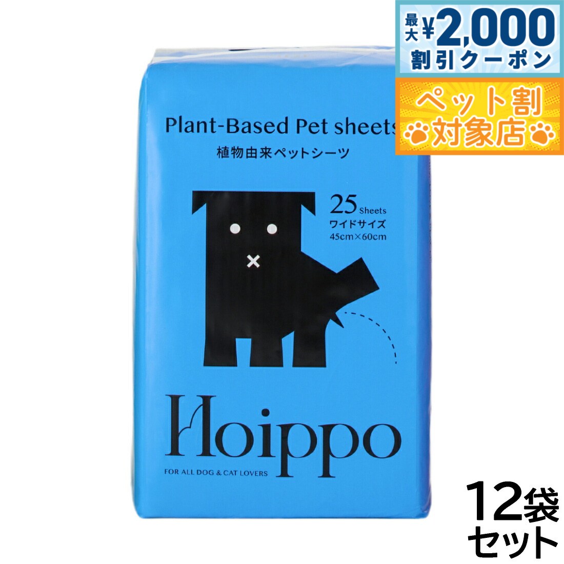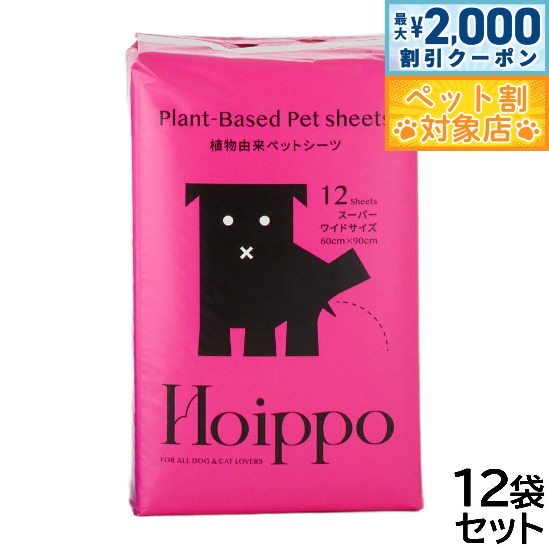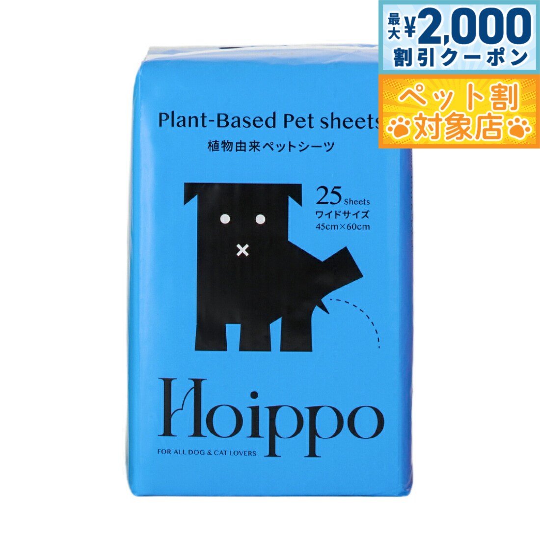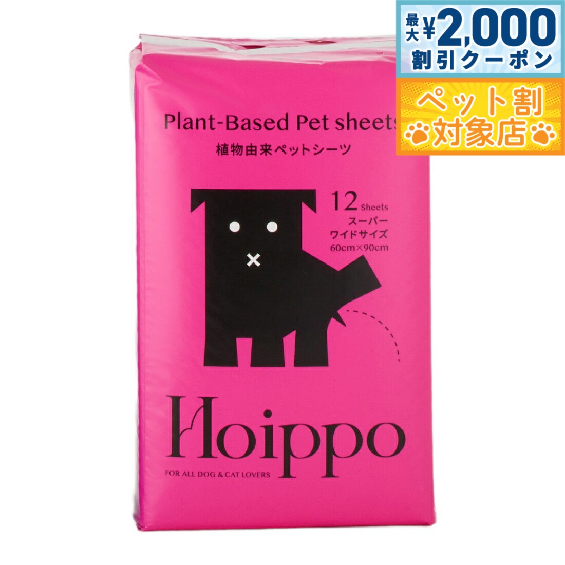 環境に配慮した植物由来の原材料を使用。コットンのような肌触りで、ペットにも環境にも優しいペットシーツです。コンポストで生分解が可能な植物由来のPLA樹脂をバックフィルムに採用。表面の不織布にも植物性原料を採用し、吸収材以外の植物由来原料化を実現しました。パッケージもPLA樹脂を使用しています。薄型なのに、高分子ポリマーがおしっこをしっかり吸収!逆戻りも防ぎます。シートには特殊なエンボス加工を施しました。白色シートを採用することで、わんちゃんのおしっこの色が分かりやすく健康管理に役立ちます。裏面の四隅にずれ防止用のテープが付いています。トレーを使用しなくてもズレにくいため、様々なシーンでご活用いただけます。ペットシーツに植物由来原料を使用することで、使いやすさを保ちながら環境に配慮した製品になっています。商品名Hoippo(ホイッポ) 植物由来ペットシーツブランドHoippo材質表面材:不織布(植物由来)/吸収材:綿状パルプ、高分子吸収材、吸収紙/防水材:PLA樹脂/結合材:ロジン樹脂/外装素材:PLA樹脂(塗料は石油由来)大きさ60×90cm(シーツ1枚)原産国中国 環境に配慮した植物由来の原材料を使用。コットンのような肌触りで、ペットにも環境にも優しいペットシーツです。植物由来原料使用:コンポストで生分解が可能な植物由来のPLA樹脂(※)をバックフィルムに採用。表面の不織布にも植物性原料を採用し、吸収材以外の植物由来原料化を実現しました。また、パッケージもPLA樹脂を使用しています。※PLA樹脂とは「Poly-Lactic Acid」の略語で、日本語でいうと「ポリ乳酸」と呼ばれる、トウモロコシやじゃがいもなどの植物を原料とする樹脂材料のことです。コンポスト環境下での土中の微生物によって分解され、土に還る(生分解性)素材として近年注目されています。高吸収薄型タイプ:薄型なのに、高分子ポリマーがおしっこをしっかり吸収!逆戻りも防ぎます。特殊加工&白色シート:シートには特殊なエンボス加工を施しました。また、白色シートを採用することで、わんちゃんのおしっこの色が分かりやすく健康管理に役立ちます。ずれ防止テープ付き:裏面の四隅にずれ防止用のテープが付いています。トレーを使用しなくてもズレにくいため、様々なシーンでご活用いただけます。CO2排出量の削減:植物由来原料を焼却する際のCO2排出量は、数あるプラスチックの中でも最小レベルと言われています。ペットシーツに植物由来原料を使用することで、使いやすさを保ちながら環境に配慮した製品になっています。【注意事項】●用途以外に使用しないでください。●不織布の面を上にして敷いてください。●シーツはハサミ等で切らずにそのままご使用ください。ハサミで切ると中身のこぼれや漏れの原因になります。●汚れても構わない平らな場所に置いてご使用ください。●高温多湿を避け直射日光の当たらない場所で保管してください。●火気の近くでは使用しないでください。●本製品は食べられません。万が一飲み込んでしまった場合は医師または獣医師に相談してください。●伸縮性のある素材を使用しているため表示寸法と若干異なる場合があります。●商品の仕様は予告なく変更することがあります。※生分解性100%の製品ではありません。※本製品は燃えるゴミに捨ててください。※本製品は生分解率100%ではありません。トイレに流したり土や海など自然な環境下へ絶対に廃棄せずお住まいの自治体に従って処理してください。※使用後は汚れた面を内側にし小さく丸めてから処理してください。対象ペット:犬メーカー名ヘンリー株式会社Hoippo(ホイッポ) 植物由来ペットシーツ環境に配慮した植物由来の原材料を使用。コットンのような肌触りで、ペットにも環境にも優しいペットシーツです。コンポストで生分解が可能な植物由来のPLA樹脂をバックフィルムに採用。表面の不織布にも植物性原料を採用し、吸収材以外の植物由来原料化を実現しました。パッケージもPLA樹脂を使用しています。薄型なのに、高分子ポリマーがおしっこをしっかり吸収!逆戻りも防ぎます。シートには特殊なエンボス加工を施しました。白色シートを採用することで、わんちゃんのおしっこの色が分かりやすく健康管理に役立ちます。裏面の四隅にずれ防止用のテープが付いています。トレーを使用しなくてもズレにくいため、様々なシーンでご活用いただけます。ペットシーツに植物由来原料を使用することで、使いやすさを保ちながら環境に配慮した製品になっています。