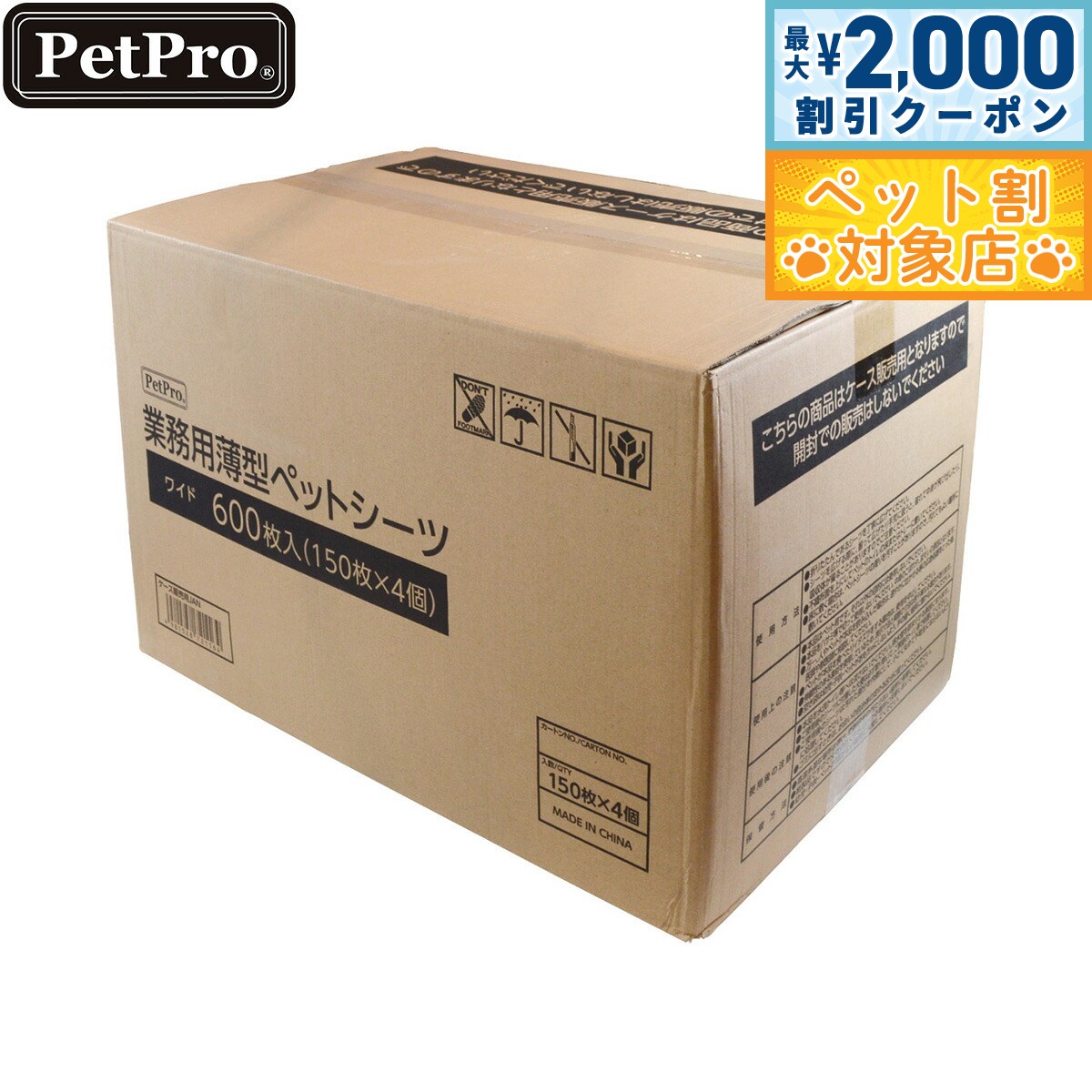 住友精化製、国産高吸収ポリマー使用で尿をすばやく吸収して表面がさらりと気持ちいい!健康チェックに便利な白色シートを使用。薄型タイプなので場所を取らず、経済的でシーツをこまめに交換したいオーナー様に最適です。商品名ペットプロ ペットシーツブランドペットプロ PetPro材質不織布、抗菌ポリマー、ポリエチレン、綿状パルプ、吸水紙、ホットメルト接着剤大きさ1枚当たりのサイズ:約45×60cm生産国中国 【使用方法】・折りたたんであるシーツを丁寧に広げてください。・シーツを広げる際に、振って広げたり手荒に扱うと、破れて中身が飛び出したり、吸収体が偏ることがありますのでご注意ください。・不織布面を上にしてペットのトイレの床またはトレーに敷いて下さい。・床に敷く場合は、ペットシーツの周りを汚すことがありますので、汚れてもよい場所に敷いてください。【使用上の注意】・本品はペット用です。それ以外の目的には使用しないでください。・本品をハサミ等で切って使用しないでください。中身のこぼれや、尿モレの原因となります。・万一、人やペットが本品を飲み込んだ場合は、速やかに吐かせる等の応急処置をとった後。医師や獣医師に相談してください。・ペットが本品を食べたりイタズラをする場合は、使用を中止してください。・伸縮際のある素材を使用しているため、表示寸法と実際の寸法が若干異なる場合があります。・空き袋は幼児・子供・ペットがおもちゃにしないよう、手の届く場所に置かないでください。【使用後の注意】・本品を水洗トイレなどへ流さないでください。排水菅を詰まらせる原因になります。・ご使用後のシーツに付着した大便は必ず取り除いて、ご家庭のトイレなどで処理してください。・ご使用後のシーツは汚れた部分を内側にして、小さく丸めて不衛生にならないように処理してください。・ゴミに出すときは、お住まいの自治体の定める区分に従ってください。【保管方法】・高温多湿な場所は避け、直射日光の当たらない場所に保管してください。・紙製品ですので火気の近くや水のかかる場所に保管しないでください。・幼児・子供・ペットが届かない場所に保管してください。メーカー名株式会社 ペットプロジャパンペットプロ ペットシーツ住友精化製、国産高吸収ポリマー使用で尿をすばやく吸収して表面がさらりと気持ちいい!健康チェックに便利な白色シートを使用。薄型タイプなので場所を取らず、経済的でシーツをこまめに交換したいオーナー様に最適です。