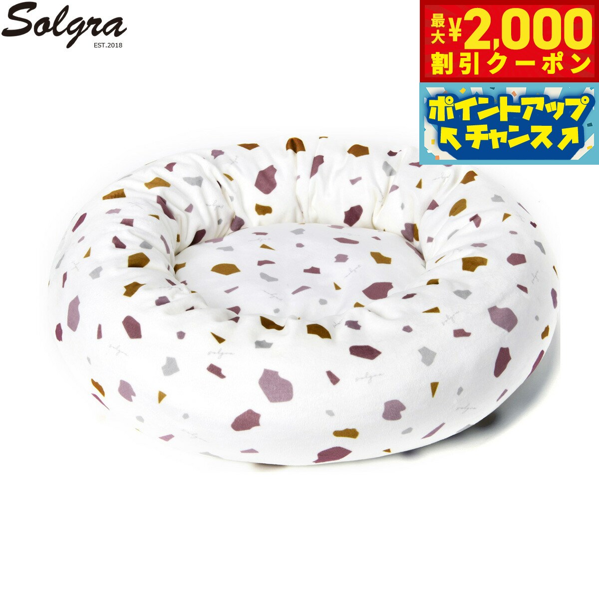 ベロア生地を使用した、あたたかなラウンドベッドです。とってもふかふかで包み込まれるような心地よさが魅力。ベッドの縁にアゴを乗せるのが好きなわんちゃんに!丸まるのが好きなわんちゃんにおすすめのベッドです。商品名Solgra ソルグラ テラゾー柄ラウンドベッドブランドSolgra材質ポリエステル100%大きさW550mm×H150mm×D550mm原産国中国 ふかふかぬくぬくベッド対象ペット:犬本体重量620gメーカー名株式会社アルク・ロースSolgra ソルグラ テラゾー柄ラウンドベッドベロア生地を使用した、あたたかなラウンドベッドです。とってもふかふかで包み込まれるような心地よさが魅力。ベッドの縁にアゴを乗せるのが好きなわんちゃんに!丸まるのが好きなわんちゃんにおすすめのベッドです。
