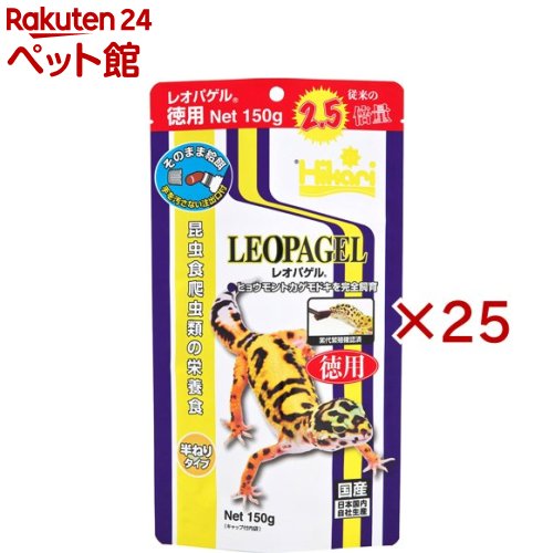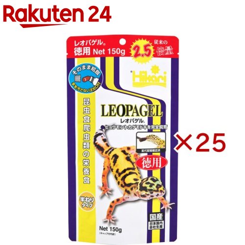 お店TOP>ペット用品>爬虫類・両生類用品>爬虫類・両生類フード>爬虫類・両生類フード全部>ひかり レオパゲル (150g×25セット)【ひかり レオパゲルの商品詳細】●昆虫食爬虫類向けの総合栄養食。●半ねりタイプで抜群の嗜好性。●レトルトで清潔・給餌可能。●メーカー従来品の2.5倍量。●手を汚さない注出口付。【使用方法】・一口で食べる量をしぼり出してピンセットなどで取り、爬虫類の目の前で動かして与え、食べなくなるまで続けてください。・ヒョウモントカゲモドキの場合、幼体には毎日、成体には2、3日に1回が目安です。【ひかり レオパゲルの原材料】ミルワームミール、食物繊維、大豆ミール、ビール酵母、シルクワームミール、海藻粉末、クエン酸、寒天、炭酸カルシウム、塩化コリン、ビタミンE、L-アスコルビン酸、パントテン酸カルシウム、リボフラビン、ビタミンA、チアミン、ピリドキシン、ナイアシン、葉酸、ビタミンD3、ビオチン、リン酸ナトリウム、硫酸鉄、硫酸マグネシウム、硫酸亜鉛、硫酸マンガン、硫酸銅、ヨウ素酸カルシウム【栄養成分】蛋白質:10%以上、脂質:1.0%以上、粗繊維:2.5%以下、水分:80%以下、灰分:3.5%以下、りん:0.1%以上【注意事項】・異臭など商品に異常が見られた場合には、与えないでください。・与え始めは、一時的に便がゆるくなったり出にくくなることがあります。・雑菌の繁殖を防ぐため、なるべく注出口に手を触れないでください。・最初に水分の多いゼリー状の部分が出ることがありますが、与えても問題ありません。・人間の食品ではありません。【原産国】日本【ブランド】ひかり【発売元、製造元、輸入元又は販売元】キョーリンこちらの商品は、ペット用の商品です。※説明文は単品の内容です。リニューアルに伴い、パッケージ・内容等予告なく変更する場合がございます。予めご了承ください。・単品JAN:4971618206077キョーリン兵庫県姫路市白銀町9番地079-289-3739広告文責:楽天グループ株式会社電話:050-5577-5043[小動物・鳥・は虫類・昆虫/ブランド:ひかり/]
