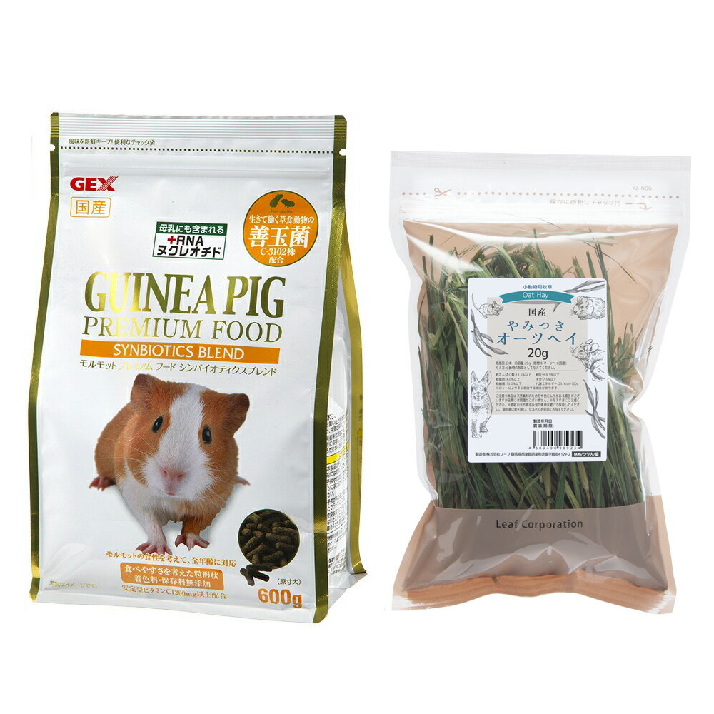 メーカー:用品セットモルモットプレミアムフードとオーツヘイのセット!【国産牧草付きセット】GEX モルモットプレミアムフード シンバイオティクスブレンド 600g + 国産やみつきオーツヘイ20g対象モルモットセット内容GEX モルモットプレミアムフード シンバイオティクスブレンド 600g令和4年産 国産 やみつきオーツヘイ(えん麦) 20g特長【モルモットプレミアムフード】●シンバイオティクスブレンドは、プロバイオティクスと、プレバイオティクスを一緒に摂取できる草食動物のためのフードです。 ●有用菌とそのエネルギー源を一緒に摂取することで、腸の環境をより改善でき、お腹の中から健康維持をサポートします。 ●フードの切り替えが不要な生涯与えられるペレットです。 ●摂取効率をあげるためにビタミンCは安定性のものを配合しました。【やみつきオーツヘイ】●国内の提携&自社農場で栽培中無農薬で育てたオーツヘイ(えん麦)を若いうちに刈り取り、低温で自家乾燥させました。●穂が出る前の栄養がつまった時期に収穫、新鮮なうちに処理し、きれいな緑色と香りを閉じ込めおいしく仕上げたやみつき牧草です。●イネ科の牧草で茎が柔らかく高繊維・低カルシウム。甘みが強く嗜好性が高いのが特長です。●ふわっと無圧縮のまま袋詰めをしているので輸入牧草にはマネのできない粉の少なさと品質の高さを誇っています。●着色料や保存料、添加物は使用しておりません。素材そのままなので安心です。●保存に便利なチャック付きパッケージです。窒素ガス充填パックなので新鮮なままお届けします。原材料【モルモットプレミアムフード】アルファルファミール、小麦粉、ふすま、コーンミール、脱脂大豆粉、ビートパルプ、脱脂糠、大豆皮、イヌリン、ビタミンC、RNAヌクレオチド、枯草菌(C−3102株)、ビタミン類(A、B1、B2、B6、C、D3、E、K3、ニコチン酸、パンテント酸カルシウム、イノシトール、葉酸、コリン)、ミネラル類(硫酸マンガン、硫酸鉄、硫酸銅、硫酸コバルト、硫酸マグネシウム、炭酸亜鉛、ヨウ素酸カルシウム、炭酸カルシウム)、食塩【やみつきオーツヘイ】オーツヘイ(えん麦)保証成分【モルモットプレミアムフード】粗タンパク質:17.0%以上、粗脂肪:1.0%以上、粗繊維:15.0%以下、粗灰分:8.0%以下、水分:10.0%以下、カルシウム:1.0%以上、リン:0.55%以上、ビタミンC:1200mg/kg以上【やみつきオーツヘイ】粗たんぱく質:13.5%以上、粗脂肪:4.0%以上、粗繊維:15.0%以下、粗灰分:8.5%以下、水分:7.5%以下代謝エネルギー:257Kcal/100g ※ロットにより多少前後する場合があります。 エネルギー【モルモットプレミアムフード】 273kcal/100gご注意※本製品はモルモット用です。他の目的には使用しないでください。アペックス ペットのみず 500ml牧草 一番刈り ハイペット パスチャーチモシー 450g うさぎGEX モルモットプレミアムフード シンバイオティクスブレンド 600g 国産国産牧草 やみつきオーツヘイ(えん麦) 20g お試しサイズ 牧草 うさぎ モルモット デグー 小動物 おやつ USAYAMA … GEX モルモットプレミアムフード シンバイオティクスブレンド 600g 国産やみつきオーツヘイ20g 20220610 y22m06 ytks 草食動物 草食専用 生きた乳酸菌 カルピス 生きた菌 枯草菌 お腹 消化器 健康 腸内環境 ペレットフード 胃酸 熱 有用菌 RNA ヌクレオチド 小動物 齧歯類 ネズミ モルモット チンチラ・デグー モルモット用フード ジェックス 高級 エキゾチックアンマル 4972547033192 国産 やみつきオーツヘイ(えん麦) 20g お試しサイズ 4589498989234 エサ 餌 ごはん フードセット leaf_other pus2207leaf08 2022yoatset フード ご飯GEX モルモットプレミアムフード シンバイオティクスブレンド 600g 国産国産牧草 やみつきオーツヘイ(えん麦) 20g お試しサイズ 牧草 うさぎ モルモット デグー 小動物 おやつ USAYAMA構成する商品内容は在庫状況により予告無く変更になる場合がございます。予めご了承下さい。■この商品をお買い上げのお客様は、下記商品もお買い上げです。※この商品には付属しません。■アペックス ペットのみず 500ml牧草 一番刈り ハイペット パスチャーチモシー 450g うさぎGEX モルモットプレミアムフード シンバイオティクスブレンド 600g 国産国産牧草 やみつきオーツヘイ(えん麦) 20g お試しサイズ 牧草 うさぎ モルモット デグー 小動物 おやつ USAYAMA