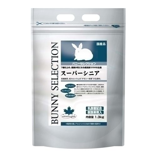 【商品詳細】7歳以上の、健康が気になる超高齢ウサギの主食。高繊維、低カルシウムの“チモシー牧草”が主原料。7歳からの超高齢ウサギのために、コエンザイムQ10、グルコサミン、コラーゲンを配合。また、超高齢ウサギの腸内環境に配慮したオリゴ糖、乳酸菌、多種微量成分含有のビール酵母等も配合した、高繊維質チモシー牧草主体の好バランスな栄養になっています。【分類】ウサギフード【原材料】チモシーミール、アルファルファミール、小麦粉、乾燥おから、グルテンミール、小麦胚芽、コラーゲン、ビール酵母、オリゴ糖、アガリクス、食物繊維状多糖類、酵母発酵副産物、グルコサミン、殺菌処理乳酸菌、コエンザイムQ10、ミネラル類(食塩、硫酸亜鉛、硫酸銅、硫酸コバルト、ヨウ素酸カルシウム)、ビタミン類(A、B2、B6、D3、E、塩化コリン、ニコチン酸、D−パントテン酸カルシウム、葉酸)、アミノ酸類(DL-メチオニン)、甘味料(ソーマチン)【保証成分】粗たん白質…15.0%以上粗脂肪…3.0%以上粗繊維…22.0%以下粗灰分…11.0%以下水分…10.0%以下カルシウム…0.6%以上リン…0.4%以上代謝エネルギー…250kcal以上/100g【エネルギー】250kcal以上/100g【給与方法】1日にウサギの体重1KG当たり40g程度を基本量に、朝夕2回に分け体調に応じて加減して下さい。牧草や野菜を与える場合は、適宜、基本量を加減してください。【賞味期限】24ヶ月【原産国または製造地】日本【送料について】北海道、沖縄、離島は送料を頂きます。