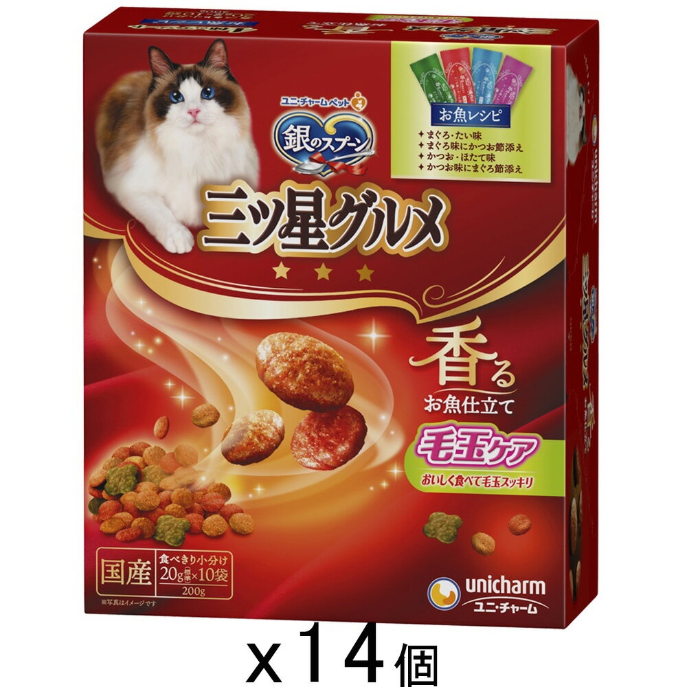 メーカー:ユニチャーム香り贅沢お魚の美味しさ!ユニチャーム 銀のスプーン 三ツ星グルメ 毛玉ケア お魚レシピ4種のアソート 200g×14個対象猫タイプドライフード機能総合栄養食ライフステージ成猫(1歳以上)特長●贅沢な素材のうまみたっぷりで、香ばしく焼き上げたドライ粒と、猫ちゃんが喜ぶおいしさをミックスした総合栄養食です。●猫ちゃんが喜ぶお魚のおいしさがひと箱に4種類詰まった贅沢なおいしさです。(まぐろ・たい味、まぐろ味にかつお節添え、かつお・ほたて味、かつお味にまぐろ節添え)●カリッとしたまぐろ入り粒も入って、新しい食感が楽しめます。※カリッとした食感を出す為に、粒を発泡させているため、粒表面にも気泡の穴が開いている場合がございます。●毛づくろい等で飲み込んでしまった毛の排泄を助けるために、食物繊維を増量しています。●おいしさと豊かな風味を逃さない、食べきり小分パック20g×10袋です。 内容量200g(20g×10袋)×14個原材料穀類(トウモロコシ、コーングルテンミール、小麦粉、パン粉)、肉類(ポークミール、チキンミール、ビーフミール、チキンエキス)、油脂類、セルロースパウダー、魚介類(フィッシュミール、フィッシュエキス、鰹節、鮪節、マグロミール、カツオミール、煮干パウダー、白身魚ミール、乾燥シラス、タイパウダー、ホタテパウダー)、ビール酵母、野菜類(ビートパルプ、ニンジンパウダー、カボチャパウダー、ホウレンソウパウダー)、酵母エキス、ミネラル類(カルシウム、塩素、コバルト、銅、鉄、ヨウ素、カリウム、マンガン、リン、亜鉛)、調味料、ビタミン類(A、B1、B2、B6、B12、C、D、E、K、コリン、ナイアシン、パントテン酸、ビオチン、葉酸)、着色料(二酸化チタン、赤色102号、赤色106号、黄色4号、黄色5号、青色1号)、アミノ酸類(タウリン)、酸化防止剤(ミックストコフェロール、ハーブエキス)保証成分タンパク質:30.0%以上、脂質:20.0%以上、粗繊維:9.0%以下、粗灰分:7.0%以下、水分:10.0%以下カロリー390kcal/100g生産国日本与え方●初めて与える場合は、一度に多量を食べさせると便がゆるくなることがあるため、今までの食事に少量混ぜ、徐々に量を増やしながら、1〜2週間で切り替えてください。ご注意※本品は1歳以上の成猫用です。対象年齢以外の猫には与えないでください。※まれに体調や体質に合わない場合もあります。何らかの異常に気づかれたときは給与を中断し、早めに獣医師に相談することをおすすめします。※素材の数に差異が生じることがあります。お問い合わせについて商品の不明点につきましては、下記にお問い合わせください。ユニ・チャームペットケアお客様相談ダイヤルTEL:0120−810−539モンプチ スープ まぐろスープ かにかま、しらす入り 40g×48袋 キャットフードキャットフード 銀のスプーン 三ツ星グルメ 毛玉ケア お魚レシピ 240g(20g×12袋)×14個キャットフード 銀のスプーン 三ツ星グルメ 下部尿路の健康維持用 1歳から10歳頃まで お魚レシピ 240g(20g×12袋)×14個キャットフード 銀のスプーン 三ツ星グルメ お魚レシピに贅沢素材 4種のアソート 200g(20g×10袋)×14個キャットフード 銀のスプーン 三ツ星グルメ 腎臓の健康維持用 10歳が近づく頃から お魚レシピに贅沢素材4種のアソート 200g 14個キャットフード 銀のスプーン 三ツ星グルメ 腎臓の健康維持用 15歳が近づく頃から 4種のアソート 200g×14個 … de20_unigpd autoprice_off _neko 20170413 KNIM 猫フード 猫ごはん キャットフード 愛猫用 ドライフード 4520699662120 ユニチャーム 銀のスプーン 三ツ星グルメ 毛玉ケア お魚レシピ 4種のアソート 200g ユニ・チャーム お魚 4種類 inc_ginsupu_set inc_mitubosi_main inc_ginsupu_dry_gurume DEAL_uni_1711 セット 14個入り 20171121 MYT 三ッ星グルメ カリカリ p15ginsp ×14個 ドライ フードキャットフード 銀のスプーン 三ツ星グルメ 毛玉ケア お魚レシピ 4種のアソート 200g構成する商品内容は在庫状況により予告無く変更になる場合がございます。予めご了承下さい。■この商品をお買い上げのお客様は、下記商品もお買い上げです。※この商品には付属しません。■モンプチ スープ まぐろスープ かにかま、しらす入り 40g×48袋 キャットフードキャットフード 銀のスプーン 三ツ星グルメ 毛玉ケア お魚レシピ 240g(20g×12袋)×14個キャットフード 銀のスプーン 三ツ星グルメ 下部尿路の健康維持用 1歳から10歳頃まで お魚レシピ 240g(20g×12袋)×14個キャットフード 銀のスプーン 三ツ星グルメ お魚レシピに贅沢素材 4種のアソート 200g(20g×10袋)×14個キャットフード 銀のスプーン 三ツ星グルメ 腎臓の健康維持用 10歳が近づく頃から お魚レシピに贅沢素材4種のアソート 200g 14個キャットフード 銀のスプーン 三ツ星グルメ 腎臓の健康維持用 15歳が近づく頃から 4種のアソート 200g×14個