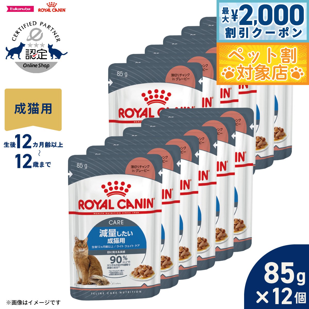 フィーライン ケア ニュートリション ライト ウェイト ケアは、最適に調整された栄養バランスによって、健康的な体重管理をサポートします。食物繊維がお腹を満たすことによって食べ過ぎを抑制。低脂肪に抑えることで、理想的な体重への到達または維持をサポートし、高いタンパク質含有量によって健康な筋肉を維持します。商品名ロイヤルカナン フィーライン ケア ニュートリション ウェット ライトウェイトケア グレービー 減量したい成猫用(生後12ヵ月齢以上)原材料鶏肉、豚肉、米粉、豚タンパク、セルロース、小麦タンパク、調味料(アミノ酸類)、酵母エキス、アミノ酸類(グリシン、タウリン、メチオニン、L-カルニチン)、増粘安定剤(増粘多糖類)、ミネラル類(Na、P、K、Ca、Cl、Zn、Fe、Cu、Mn、I、キレートミネラル(Zn、Cu、Mn))、ビタミン類(コリン、D3、E、B1、ナイアシン、B2、パントテン酸カルシウム、B6、葉酸、ビオチン、B12)賞味期限製造から24ヶ月(メーカー出荷のタイミングによりばらつきがございます。詳細はお問い合わせください。)カロリー75kcal/100g原産国オーストリア 保証成分:たんぱく質8.0%以上、脂質0.1%以上、粗繊維2.2%以下、灰分1.9%以下、水分85%以下【目に見える実感】90%以上*の猫が8週間以内の減量に成功** *ロイヤルカナン調べ **ロイヤルカナン ドライとウェットの低脂肪設計により。(標準的なロイヤルカナン製品に含まれる脂肪量と比較し、ドライ製品は33%、ウェット製品は25%減。)【体重管理のために】のドライとウェットを組み合わせることによって、愛猫に最適な栄養バランスを与えます。 おもちゃを使うなどして、遊ぶ機会を増やしてあげてください。 人間の食事やおやつを与えることは控えましょう。 愛猫の健康について気になることがある場合には、かかりつけの動物病院で受診することをお勧めします。メーカー名ロイヤルカナン ジャポン 合同会社メーカー希望小売価格はメーカーカタログに基づいて掲載していますロイヤルカナン フィーライン ケア ニュートリション ウェット ライトウェイトケア グレービー 減量したい成猫用(生後12ヵ月齢以上)フィーライン ケア ニュートリション ライト ウェイト ケアは、最適に調整された栄養バランスによって、健康的な体重管理をサポートします。食物繊維がお腹を満たすことによって食べ過ぎを抑制。低脂肪に抑えることで、理想的な体重への到達または維持をサポートし、高いタンパク質含有量によって健康な筋肉を維持します。