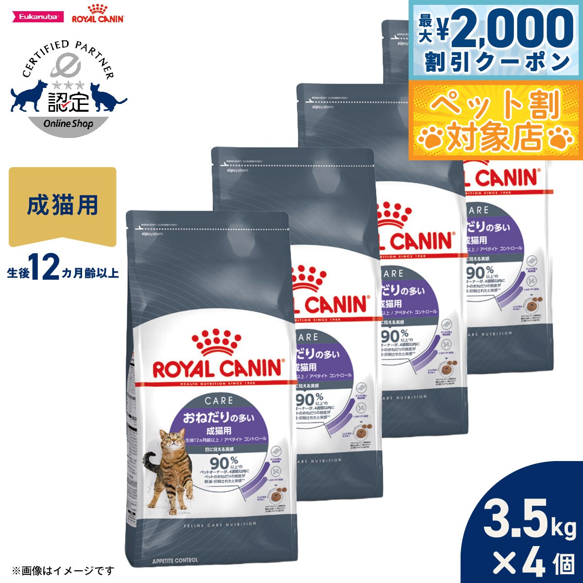 『アペタイト コントロール』は、長時間の空腹感を抑制することを目的として設計された総合栄養食です。理想的な食物繊維の配合によって、満腹感を維持します。また、適量のタンパク質と脂肪が、健康的な体重の維持に配慮し、健康的な脂肪代謝を維持するために、L-カルニチンを配合しています。頻繁におねだりをし、食べ物をいつでも簡単に摂取できる猫の場合は、体重が増加しやすくなり、健康に影響を及ぼす恐れがあります。適切な栄養バランスの食事で、空腹感の抑制および健康的な体重を維持する役割を果たしてくれます。商品名ロイヤルカナン フィーライン ケア ニュートリション アペタイト コントロール おねだりの多い成猫用(生後12ヵ月齢以上)原材料肉類(鶏、七面鳥)、植物性繊維、コーン、超高消化性小麦タンパク(消化率90%以上)、小麦、コーングルテン、加水分解タンパク(鶏、七面鳥)、動物性油脂、米、ビートパルプ、酵母および酵母エキス、大豆油、魚油、サイリウム、フラクトオリゴ糖、アミノ酸類(タウリン、DL-メチオニン、L-カルニチン)、ゼオライト、ミネラル類(Cl、K、Na、Ca、P、Zn、Mn、Fe、Cu、I、Se)、ビタミン類(A、コリン、D3、E、C、ナイアシン、パントテン酸カルシウム、B2、B6、B1、葉酸、ビオチン、B12)、酸化防止剤(ミックストコフェロール、ローズマリーエキス)賞味期限製造から18ヶ月(メーカー出荷のタイミングによりばらつきがございます。詳細はお問い合わせください。)カロリー341kcal/100g原産国フランス 保証成分:たんぱく質32.0%以上、脂質10.0%以上、粗繊維10.2%以下、灰分9.0%以下、水分6.5%以下【食事のおねだりが多い猫のために】頻繁におねだりをし、食べ物をいつでも簡単に摂取できる猫の場合は、体重が増加しやすくなり、健康に影響を及ぼす恐れがあります。適切な栄養バランスの食事で、空腹感の抑制および健康的な体重を維持する役割を果たしてくれます。【愛猫が食間に、より頻繁におねだりをしますか?】 適切な脂肪※とエネルギー含有量※に調整することで、健康的な体重の維持をサポートします。また、健康的な脂肪代謝に役立つことで知られているL-カルニチンを配合。 ※当社の標準的な製品と比較【泌尿器の健康を維持】成猫の健康な泌尿器を維持するためにミネラルバランスを調整しています。【食欲管理のために】のドライとウェットを組み合わせることによって、愛猫に最適な栄養バランスを与えます。 1日の給与量を超えない範囲で本製品をおやつの代わりに与えることもお勧めです。給与量の目安は本製品のパッケージをご参考ください。 おもちゃを使うなどして、遊ぶ機会を増やしてあげてください。 愛猫の健康について気になることがある場合には、かかりつけの動物病院で受診することをお勧めします。【目に見える実感】90%以上*のペットオーナーが、4週間以内にペットのおねだり頻度が軽減・抑制されたと実感** 90%以上*のペットオーナーが、のドライとウェットを与えた結果、4週間以内にペットのおねだりの頻度が軽減・抑制されたと実感**しています。 *ロイヤルカナン調べ **食物繊維(植物性繊維、ビートパルプ、サイリウム)の配合により、食欲を満たし満腹感を維持【タンパク質と脂肪調整】 【L-カルニチン配合】メーカー名ロイヤルカナン ジャポン 合同会社メーカー希望小売価格はメーカーカタログに基づいて掲載していますロイヤルカナン フィーライン ケア ニュートリション アペタイト コントロール おねだりの多い成猫用(生後12ヵ月齢以上)『アペタイト コントロール』は、長時間の空腹感を抑制することを目的として設計された総合栄養食です。理想的な食物繊維の配合によって、満腹感を維持します。また、適量のタンパク質と脂肪が、健康的な体重の維持に配慮し、健康的な脂肪代謝を維持するために、L-カルニチンを配合しています。頻繁におねだりをし、食べ物をいつでも簡単に摂取できる猫の場合は、体重が増加しやすくなり、健康に影響を及ぼす恐れがあります。適切な栄養バランスの食事で、空腹感の抑制および健康的な体重を維持する役割を果たしてくれます。