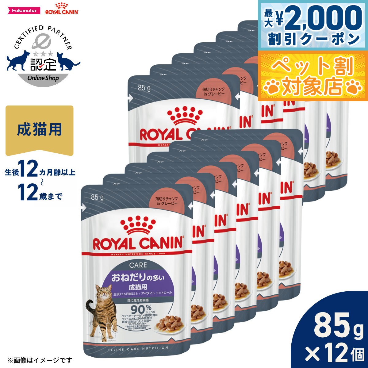 『アペタイト コントロール』は、長時間の空腹感を抑制することを目的として設計された総合栄養食です。理想的な食物繊維の配合によって、満腹感を維持します。また、適量のタンパク質と脂肪が、健康的な体重の維持に配慮し、健康的な脂肪代謝を維持するために、L-カルニチンを配合しています。90%以上のペットオーナーが、4週間以内にペットのおねだりの頻度が軽減・抑制されたと実感。商品名ロイヤルカナン フィーライン ケア ニュートリション ウェット アペタイト コントロール グレービー おねだりの多い成猫用(生後12ヵ月齢以上)原材料鶏肉、豚肉、米粉、セルロース、コーンスターチ、小麦タンパク、調味料(アミノ酸類)、酵母エキス、アミノ酸類(グリシン、タウリン、メチオニン、L-カルニチン)、増粘安定剤(増粘多糖類)、ミネラル類(Ca、K、Cl、Na、P、Zn、Fe、Cu、Mn、I、キレートミネラル(Zn、Cu、Mn))、ビタミン類(コリン、D3、E、B1、ナイアシン、B2、パントテン酸カルシウム、B6、葉酸、ビオチン、B12)賞味期限製造から24ヶ月(メーカー出荷のタイミングによりばらつきがございます。詳細はお問い合わせください。)カロリー75kcal/100g原産国オーストリア 保証成分:たんぱく質6.2%以上、脂質0.2%以上、粗繊維2.0%以下、灰分1.7%以下、水分85.3%以下【目に見える実感】90%以上*のペットオーナーが、4週間以内にペットのおねだりの頻度が軽減・抑制されたと実感** 90%以上*のペットオーナーが、『アペタイト コントロール』のドライとウェットを与えた結果、4週間以内に愛猫のおねだりの頻度が軽減・抑制されたと実感**しています。 *ロイヤルカナン調べ **独自の水分量と低カロリー設計で満腹感を維持【食欲管理のために】のドライとウェットを組み合わせることによって、愛猫に最適な栄養バランスを与えます。 1日の給与量を超えない範囲で本製品をおやつの代わりに与えることもお勧めです。給与量の目安は本製品のパッケージをご参考ください。 おもちゃを使うなどして、遊ぶ機会を増やしてあげてください。 愛猫の健康について気になることがある場合には、かかりつけの動物病院で受診することをお勧めします。メーカー名ロイヤルカナン ジャポン 合同会社メーカー希望小売価格はメーカーカタログに基づいて掲載していますロイヤルカナン フィーライン ケア ニュートリション ウェット アペタイト コントロール グレービー おねだりの多い成猫用(生後12ヵ月齢以上)『アペタイト コントロール』は、長時間の空腹感を抑制することを目的として設計された総合栄養食です。理想的な食物繊維の配合によって、満腹感を維持します。また、適量のタンパク質と脂肪が、健康的な体重の維持に配慮し、健康的な脂肪代謝を維持するために、L-カルニチンを配合しています。90%以上のペットオーナーが、4週間以内にペットのおねだりの頻度が軽減・抑制されたと実感。
