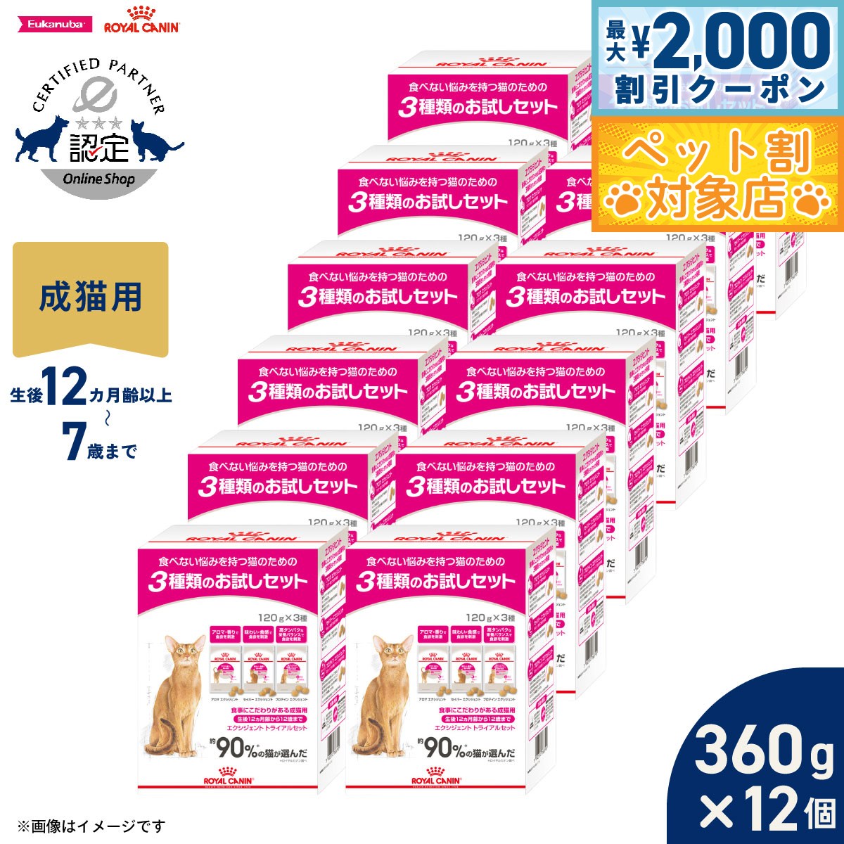 エクシジェントは、猫が好む食事の3つの特徴に注目した、食いつき・食いムラの悩みを解決する新しいドライフードです。「アロマ・香り」、「味わい・食感」、「高タンパクな栄養バランス」の3つのタイプで猫の食欲を刺激します。食べない悩みを持つ猫の約90%が3タイプのいずれかを選んだ、高嗜好性のフードです(ロイヤルカナン調べ)。独特なアロマ・香りをうみだす魚由来のタンパク質を配合。魚由来のアロマ・香りを最も好む傾向の猫を満足させます。2種類のそれぞれ違った食感と形状のキブル(粒)をブレンドし、猫の食欲を刺激します。商品名ロイヤルカナン フィーライン ヘルス ニュートリション エクシジェント トライアルセット 食事にこだわりがある成猫用原材料【アロマ エクシジェント】コーン、魚肉、動物性油脂、肉類(鶏、七面鳥)、小麦、コーングルテン、超高消化性植物性タンパク(消化率90%以上)、加水分解タンパク(鶏、七面鳥、魚)、コーンフラワー、植物性繊維、ビートパルプ、酵母および酵母エキス、大豆油、魚油(オメガ3系不飽和脂肪酸〔EPA+DHA〕源)、ルリチシャ油、アミノ酸類(DL-メチオニン、L-リジン、タウリン)、ゼオライト、ミネラル類(Ca、K、Cl、P、Na、Zn、Mn、Fe、Cu、I)、ビタミン類(A、コリン、E、D3、ナイアシン、C、パントテン酸カルシウム、B6、B2、B1、葉酸、ビオチン、K3、B12)、酸化防止剤(ミックストコフェロール、ローズマリーエキス)【セイバー エクシジェント】コーン、肉類(鶏、七面鳥、ダック)、米、動物性油脂、超高消化性小麦タンパク(消化率90%以上)、超高消化性大豆タンパク(消化率90%以上)、コーングルテン、植物性繊維、加水分解タンパク(鶏、七面鳥、魚)、酵母および酵母エキス、ビートパルプ、大豆油、塩化アンモニウム、フラクトオリゴ糖、ルリチシャ油、アミノ酸類(タウリン、DL-メチオニン)、ゼオライト、ミネラル類(Cl、K、Ca、Na、Zn、Mn、Fe、Cu、Se、I)、ビタミン類(コリン、E、C、ナイアシン、ビオチン、B2、パントテン酸カルシウム、A、B1、B6、B12、葉酸、D3)、酸化防止剤(ミックストコフェロール、ローズマリーエキス)【プロテイン エクシジェント】肉類(鶏、七面鳥)、コーン、超高消化性植物性タンパク(消化率90%以上)、加水分解タンパク(鶏、七面鳥、豚)、小麦、動物性油脂、コーングルテン、ビートパルプ、植物性繊維、酵母および酵母エキス、大豆油、ルリチシャ油、アミノ酸類(タウリン)、ゼオライト、ミネラル類(K、Cl、Ca、P、Na、Zn、Mn、Fe、Cu、I、Se)、ビタミン類(A、コリン、D3、E、C、ナイアシン、B2、パントテン酸カルシウム、B1、B6、葉酸、ビオチン、B12)、酸化防止剤(ミックストコフェロール、ローズマリーエキス)賞味期限製造から18ヶ月(メーカー出荷のタイミングによりばらつきがございます。詳細はお問い合わせください。)カロリー【アロマエクシジェント】387kcal/100g【セイバーエクシジェント】395kcal/100g【プロテインエクシジェント】391kcal/100g原産国韓国 保証成分:【アロマエクシジェント】たんぱく質31.0%以上、脂質13.0%以上、粗繊維4.2%以下、灰分9.0%以下、水分6.5%以下【セイバーエクシジェント】たんぱく質31.0%以上、脂質14.0%以上、粗繊維4.1%以下、灰分8.3%以下、水分6.5%以下【プロテインエクシジェント】たんぱく質39.0%以上、脂質13.0%以上、粗繊維4.1%以下、灰分9.6%以下、水分6.5%以下アロマ エクシジェント アロマ・香りで食欲を刺激独特なアロマ・香りをうみだす魚由来のタンパク質を配合。魚由来のアロマ・香りを最も好む傾向の猫を満足させます。セイバー エクシジェント 味わい・食感で食欲を刺激2種類のそれぞれ違った食感と形状のキブル(粒)をブレンドし、猫の食欲を刺激します。プロテイン エクシジェント 高タンパクな栄養バランスで食欲を刺激食後の栄養成分の知覚によって最も満足を得る傾向の猫のために、タンパク質の含有量を高め、炭水化物や脂肪のバランスを調整しています。【理想的な体重を維持】食事にこだわりのある猫の理想的な体重を維持するために、最適なカロリー含有量に調整しています。【泌尿器の健康を維持】成猫の健康な泌尿器を維持するためにミネラルバランスを調整しています。メーカー名ロイヤルカナン ジャポン 合同会社メーカー希望小売価格はメーカーカタログに基づいて掲載していますロイヤルカナン フィーライン ヘルス ニュートリション エクシジェント トライアルセット 食事にこだわりがある成猫用エクシジェントは、猫が好む食事の3つの特徴に注目した、食いつき・食いムラの悩みを解決する新しいドライフードです。「アロマ・香り」、「味わい・食感」、「高タンパクな栄養バランス」の3つのタイプで猫の食欲を刺激します。食べない悩みを持つ猫の約90%が3タイプのいずれかを選んだ、高嗜好性のフードです(ロイヤルカナン調べ)。独特なアロマ・香りをうみだす魚由来のタンパク質を配合。魚由来のアロマ・香りを最も好む傾向の猫を満足させます。2種類のそれぞれ違っ