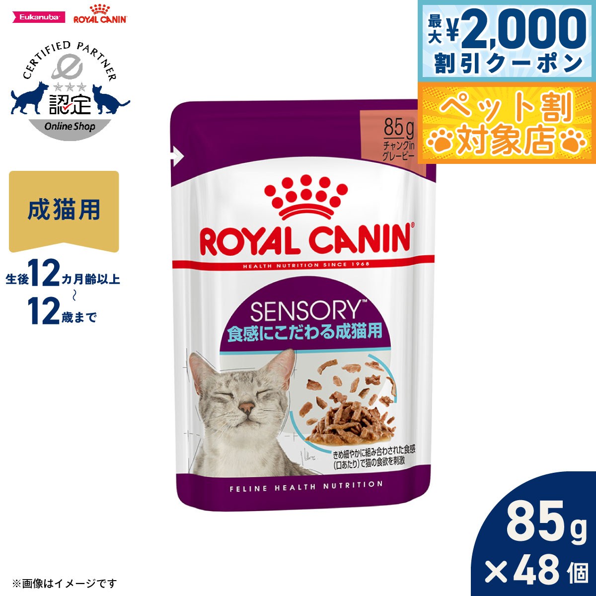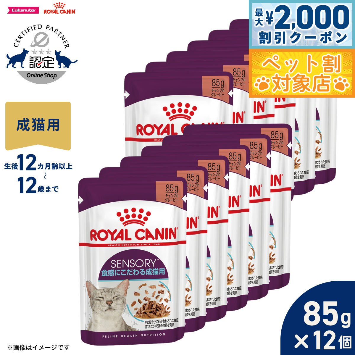 「センサリーテイスト」はきめ細やかに組み合わされた味のバランスで猫の味覚を刺激します。猫は肉食の性質であることから、旨味が強いものに敏感です。センサリーテイストは、そんな猫の味覚に合うように調整しています。健康で様々な感覚が刺激される食生活は猫のウェルビーイングを高めることができます。ロイヤルカナン センサリーは、猫の感覚を刺激し、豊かな食体験を提供します。猫が本能的に求める最適な栄養バランス「マクロ ニュートリショナル プロファイル(MNP)」に調整。商品名ロイヤルカナン フィーライン ヘルス ニュートリション ウェット センサリー テイスト 味にこだわる成猫用(12カ月齢以上〜12歳まで)原材料肉類(豚、鶏)、小麦タンパク、コーンフラワー、加水分解鶏レバー、コーンスターチ、セルロース、コーングルテン、酵母、加水分解鶏肉、サンフラワーオイル、アミノ酸類(グリシン、タウリン、メチオニン)、増粘安定剤(増粘多糖類)、ミネラル類(Ca、Na、P、K、Cl、Zn、Fe、Cu、Mn、I)、キレートミネラル(Zn、Cu、Mn)、ビタミン類(D3、E、B1、ナイアシン、B2、パントテン酸カルシウム、B6、葉酸、ビオチン、B12)賞味期限製造から24ヶ月(メーカー出荷のタイミングによりばらつきがございます。詳細はお問い合わせください。)カロリー93kcal/100g原産国オーストリア 保証成分:たんぱく質9.5%以上、脂質0.8%以上、粗繊維1.5%以下、灰分1.8%以下、水分82.5%以下【味覚で食欲を刺激】きめ細やかに組み合わされた味のバランスで猫の味覚を刺激。【感覚を刺激】健康で様々な感覚が刺激される食生活は猫のウェルビーイングを高めることができます。ロイヤルカナン センサリーは、猫の感覚を刺激し、豊かな食体験を提供します。【猫が本能的に求める栄養バランス】猫が本能的に求める最適な栄養バランス「マクロ ニュートリショナル プロファイル(MNP)」に調整。メーカー名ロイヤルカナン ジャポン 合同会社メーカー希望小売価格はメーカーカタログに基づいて掲載していますロイヤルカナン フィーライン ヘルス ニュートリション ウェット センサリー テイスト 味にこだわる成猫用(12カ月齢以上〜12歳まで)「センサリーテイスト」はきめ細やかに組み合わされた味のバランスで猫の味覚を刺激します。猫は肉食の性質であることから、旨味が強いものに敏感です。センサリーテイストは、そんな猫の味覚に合うように調整しています。健康で様々な感覚が刺激される食生活は猫のウェルビーイングを高めることができます。ロイヤルカナン センサリーは、猫の感覚を刺激し、豊かな食体験を提供します。猫が本能的に求める最適な栄養バランス「マクロ ニュートリショナル プロファイル(MNP)」に調整。