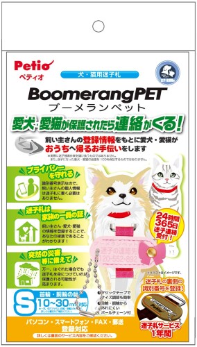 ペティオ (Petio) ブーメランペット 迷子札 リボン ペット用 S サイズ 本体サイズ (幅X奥行X高さ) :0.8×4.3×2.5cm 本体重量:0.3kg 原産国:日本 商品紹介 BIJの連絡中継サービスが受けられる迷子札です。この迷子札には、個人情報を記載する必要がないのでプライバシーが守れます。また、突然の災害等の備えとしても利用できます。BIJに迷子札の識別番号等を登録しておけば、愛犬 ■愛猫が迷子になり保護されてBIJに連絡が入ると、飼い主さんへ連絡するサービスです。(サービスは1年間) 24時間365日発見連絡受付対応。 ※実際に迷子捜索作業を請け負うものではありません。また、迷子になった愛犬 ■愛猫の返還を100%保証するものではありません。 ※BIJ:(株)ブーメランイット ■ジャパン 使用上の注意 ■本品は犬 ■猫用です。犬 ■猫以外には使用しないでください。 ■この迷子札は連絡中継サービスです。実際に迷子捜索作業を請け負うものではありません。また、必ず見つかることを保証しているわけではありません。 ■引き渡しの際のトラブルに関しては、一切責任を負いません。 ■人やペットが破片等を誤飲しないように注意してください。万一、誤飲した場合は各医師に相談してください。 ■幼児 ■子供には使用させないでください。 ■幼児 ■子供 ■ペットがおもちゃにしないように注意してください。 ■かみぐせのある犬 ■猫には使用しないでください。 ■事故や破損の原因になりますので、犬 ■猫が本品をかまないように注意してください。 ■犬 ■猫が嫌がる場合は無理に使用しないでください。 ■使用前に文字の判別と破損箇所がないか必ず確認し、文字の判別が出来ない場合や、破損がある場合は使用を中止してください。 ■犬 ■猫の毛がからまっていないか時々点検してください。からまった場合は、すぐに毛を取り除いてください。 ■本品は消耗品です。劣化が見られたら新しい製品に買い替えてください。 ■水ぬれや摩擦等で色落ちする場合があります。特に薄い毛色の犬 ■猫には注意してください。 ■火気や水気のそばでの使用や保管はしないでください。 ■幼児 ■子供 ■ペットのふれない所に保管してください。 原材料 ■成分 本体:合成皮革 チェーン:真ちゅう ラベル:ポリカーボネイト 使用方法 1パソコン ■スマートフォンから飼い主さんと愛犬 ■愛猫の情報、識別番号を登録します。 ※FAXや郵送からも登録できます。2首輪 ■胴輪に迷子札を装着してください。3もしも愛犬 ■愛猫が迷子になり、保護してくれた方が迷子札を見てブーメランペットに連絡! 4ブーメランペットが飼い主に連絡し、迷子の愛犬 ■愛猫の連絡中継のお手伝いします。 ※愛犬 ■愛猫の引き渡しの際のトラブルに関しては、(株)ブーメランイット ■ジャパン、(株)ヤマヒサは一切責任を負いません。 ※表面 ■裏面の文字が読めるか確認してください。 ※識別番号の再発行はできません。破損 ■紛失しないように注意してください。 ※装着時、面ファスナーに愛犬 ■愛猫の毛を巻き込まないように注意してください。1取りつける首輪や胴輪に、迷子札の表面が見えるように面ファスナーをテープ裏側に通します。2角カンに面ファスナーを通し、首輪や胴輪の幅に合うまで引っ張ります。3面ファスナーを折り返し、密着させ固定します。4迷子札が動かないことを確認し、余分な長さの面ファスナーをハサミでカットします。5ボールチェーンを首輪や胴輪に取りつけます。6愛犬 ■愛猫に装着します。 ※ブーメランペットの会員登録を済ませてから、ご使用ください。 商品コード20076744974商品名ペティオ (Petio) ブーメランペット 迷子札 リボン ペット用 S サイズ型番W24579サイズSカラーリボン※他モールでも併売しているため、タイミングによって在庫切れの可能性がございます。その際は、別途ご連絡させていただきます。※他モールでも併売しているため、タイミングによって在庫切れの可能性がございます。その際は、別途ご連絡させていただきます。