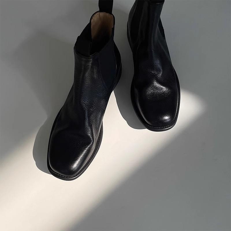 ブーツレディースチェルシーブーツ牛革革秋冬レトロヴィンテージ加工ショートブーツ厚底チャンキーヒールカジュアル普段使いラウンドトゥブラック黒ブラウン茶色