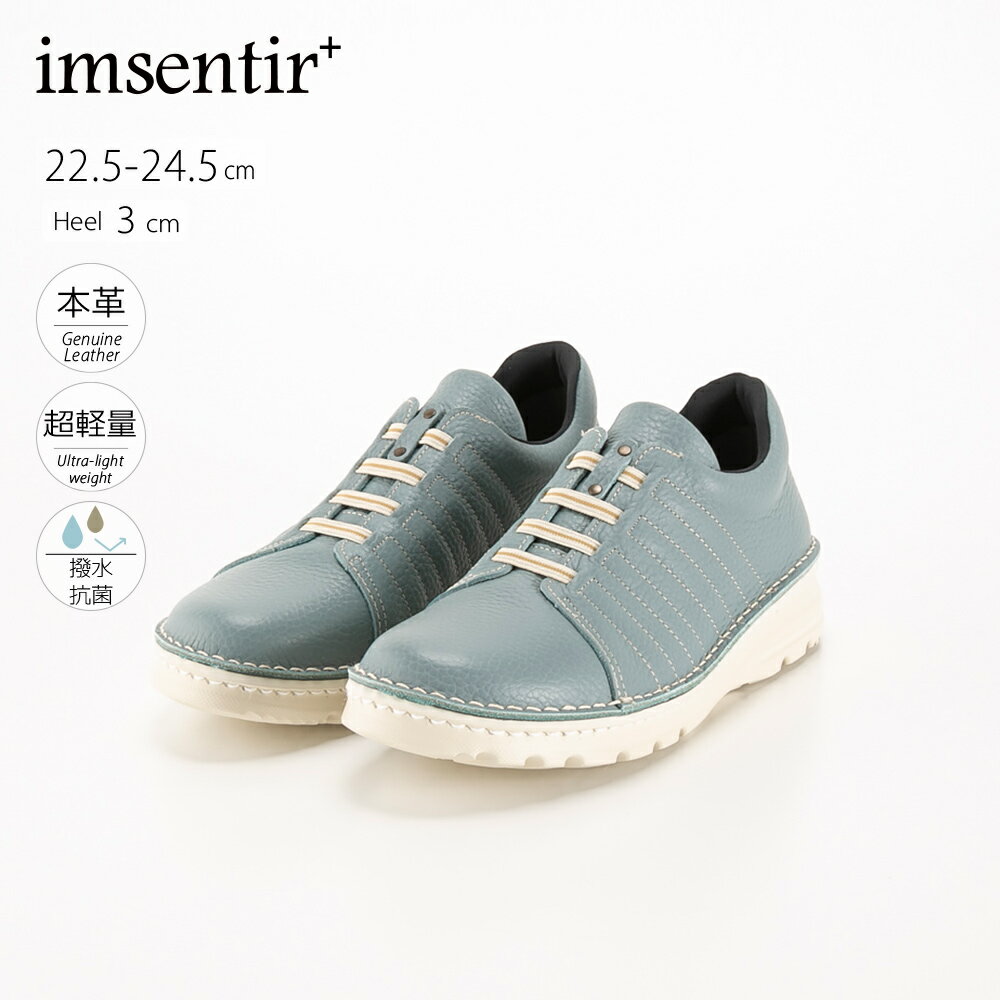 COMMENT 上質感と程良いカジュアル感を併せ持つ、大人の「旬顔」スニーカー。 高級感ある牛革の素材感にアウトステッチがアクセントになった一足です。 【イムサンティルプラス/imsentir+】 【カラーバリエーション】ライトブルー(RYBU) SPEC 【素材】本革 【靴幅】4E 【ヒール高】約3cm 【※】日本製・撥水加工