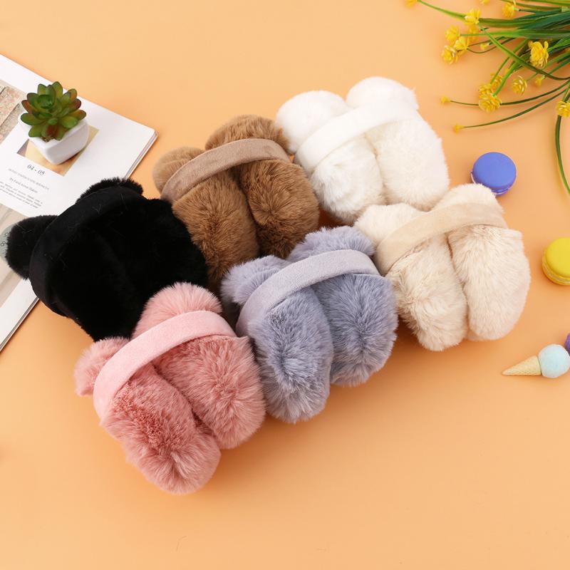 イヤーマフレディース女性用キッズ子供学生韓国風もこもこフェイクファーキャラクターかわいい防寒防風暖かいアウトドア秋冬耳当て(x2)