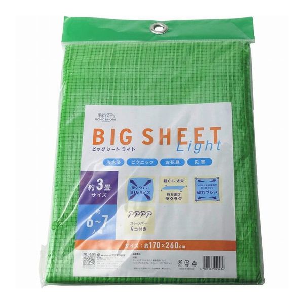 アサヒ興洋レジャーシート4~5人用Hide&Seekグリーン縦180x横180cm(2畳)ストッパー付き