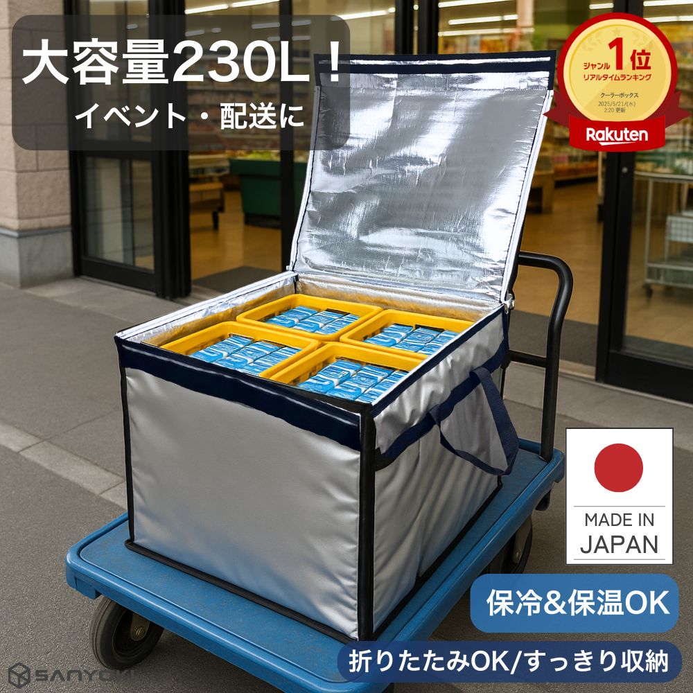 【12/420時~セール】保冷バッグ大容量230L【楽天1位!高評価4.57】業務用折りたたみ大型クーラーボックス大容量保冷ボックスクレート用天面開閉保冷バッグ保冷バック軽量業務用車載丈夫頑丈折り畳みイベント冷蔵食品保冷剤防災日本製SANYOKI