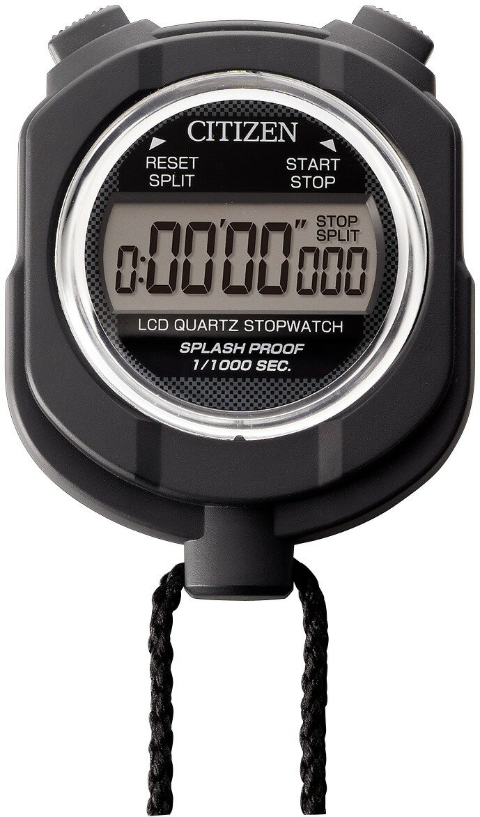 ●暗い場所でも表示が見やすいバックライト付。 ●IPX7相当の防水仕様。 ●1/100秒で計測。 ●ラップ/スプリット計測&100メモリー機能。 ●タイマー機能付(カウントダウン)。 ●便利な時計機能付(時刻・日付・アラーム)。 ●便利なネックストラップ付。 スペック ●最大計測時間(ラップ/スプリット):9時間59分59秒 ●タイマー最大セット時間:9時間59分59秒(カウントダウン) ●最大カウント数:99999回 ●最大記録数(ラップ/スプリット):100メモリー ●電源:リチウム電池 CR2032×1個 ●アラーム鳴動時間:約30秒間 ●使用温度範囲:0℃~40℃ ●電池寿命:約1年間 ●バックライト:ボタン操作後約5秒間点灯 ●防水構造:JIS C0920 IPX7