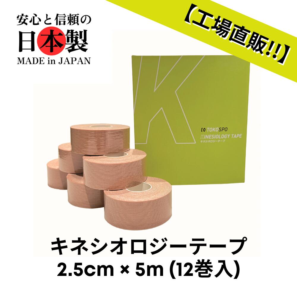 商品情報サイズ25mm×5m入数12巻(1箱)色ベージュタイプ撥水【送料無料】キネシオロジーテープ 撥水 伸縮 テーピング 幅25mm×5m 12巻(1箱) ベージュ スポーツ 外反母趾 巻き爪 ばね指 肩こり 腰痛 膝痛 関節痛 捻挫 疲労回復 最安値に挑戦!!!!キネシオロジーテープをお得にお買い求めいただけます。※こちらの商品は【幅25mm×5m 12巻(1箱)】です。 最安値に挑戦!!!!キネシオロジーテープをお得に、大容量でおもとめいただけます。部活、スポーツ、治療院の大量消費の際にコスパよくご利用いただけます。撥水加工が施されているので雨の日や汗にも安心してお使いいただけます。粘着剤はウェーブ形状のため、通気性にすぐれ蒸れにくくなっております。 2