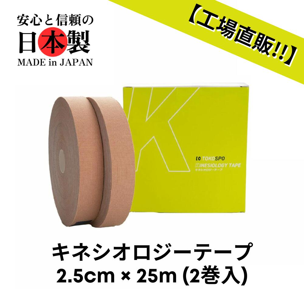 商品情報 サイズ 25mm×25m 入数 2巻(1箱) 色 ベージュ タイプ 撥水【送料無料】キネシオテープ 撥水 伸縮 テーピング 幅25mm×25m 2巻(1箱) ベージュ スポーツ 外反母趾 巻き爪 ばね指 肩こり 腰痛 膝痛 関節痛 捻挫 疲労回復 キネシオ キネシオロジーテープ 最安値に挑戦!!!!キネシオテープをお得にお買い求めいただけます。※こちらの商品は【幅25mm×25m 2巻(1箱)】です。 最安値に挑戦!!!!キネシオテープをお得に、大容量でおもとめいただけます。部活、スポーツ、治療院の大量消費の際にコスパよくご利用いただけます。撥水加工が施されているので雨の日や汗にも安心してお使いいただけます。粘着剤はウェーブ形状のため、通気性にすぐれ蒸れにくくなっております。 2