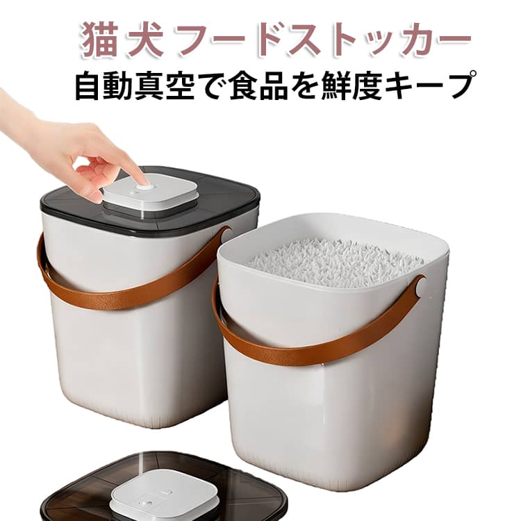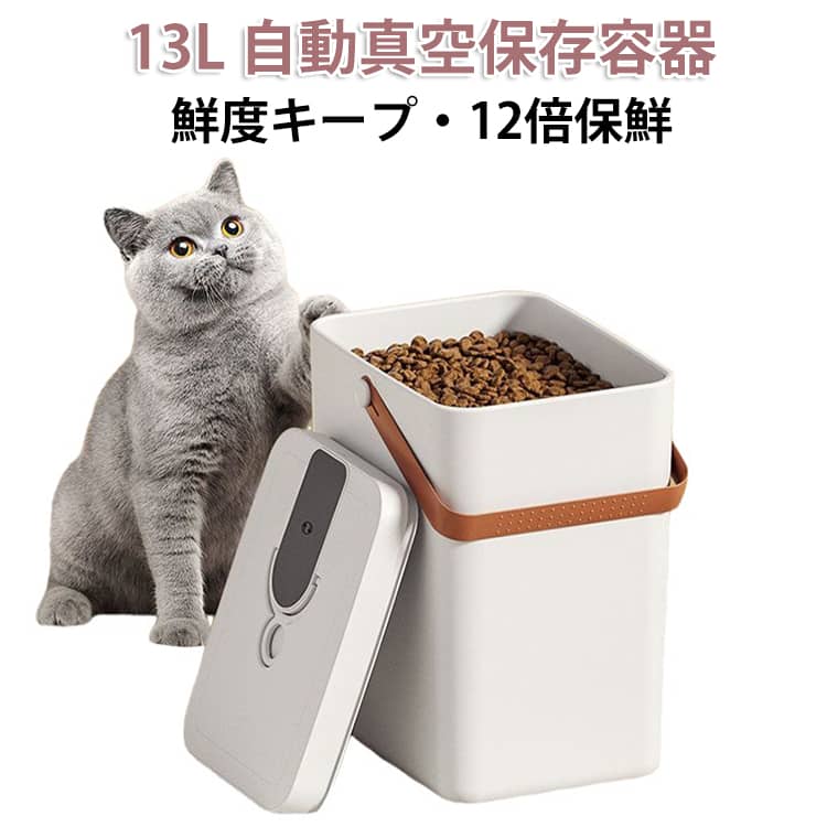 USB充電式で簡単操作!ワンタッチで自動的に空気を抜いて、容器内を真空状態に保ち、食材の劣化を防ぎます。梅雨・夏場など湿気の多い季節にも安心!さらにおしゃれなデザインで、キッチンや収納棚でもスマートに設置できます。機能:自動空気抜き機能/真空保持/密閉保存/防湿/防虫/酸化防止。対応食品:ペットフード・ドライフード・パン・粉もの・乾物・コーヒー豆・お米など。1. 自動で空気を抜くからラクラク密閉保存!面倒な手動ポンプやねじ蓋不要。ボタンを押すだけで、自動的に真空状態へ。操作は1ステップで完結!2. 大容量13Lでたっぷり保存可能!大量買いしたペットフードや業務用乾物、粉ものなどもまとめて保存可能。省スペースで保管でき、フードロスを防ぎます。3.食材の酸化・湿気・虫害から守る真空構造空気を抜いて酸化を抑え、湿気によるカビや虫の侵入も防止。大切な食材をより長く新鮮に保てます。4. USB充電式でどこでも使える!電池不要&省エネ設計。Type-Cで簡単に充電でき、台所・棚・倉庫・キャンプなどシーンを選ばず活躍!5. おしゃれなデザインで生活感をOFF生活感を抑えたシンプル&モダンな外観で、キッチンやリビングにもなじむインテリア調収納アイテムとしても◎ サイズ 13L サイズについての説明 サイズ:32.5*18.5*24.5cm リチウム電池容量:2000mAh電源:USB充電式(Type-Cケーブル付属)製品容量:13L (例:ペットフード 約4?5kg/お米 約10kg相当) 素材 食品用PP+シリコンパッキン(BPAフリー) 色 写真色 備考 ●サイズ詳細等の測り方はスタッフ間で統一、徹底はしておりますが、実寸は商品によって若干の誤差(1cm?3cm )がある場合がございますので、予めご了承ください。 ●製造ロットにより、細部形状の違いや、同色でも色味に多少の誤差が生じます。 ●パッケージは改良のため予告なく仕様を変更する場合があります。 ▼商品の色は、撮影時の光や、お客様のモニターの色具合などにより、実際の商品と異なる場合がございます。あらかじめ、ご了承ください。 ▼生地の特性上、やや匂いが強く感じられるものもございます。数日のご使用や陰干しなどで気になる匂いはほとんど感じられなくなります。 ▼同じ商品でも生産時期により形やサイズ、カラーに多少の誤差が生じる場合もございます。 ▼他店舗でも在庫を共有して販売をしている為、受注後欠品となる場合もございます。予め、ご了承お願い申し上げます。 ▼出荷前に全て検品を行っておりますが、万が一商品に不具合があった場合は、お問い合わせフォームまたはメールよりご連絡頂けます様お願い申し上げます。速やかに対応致しますのでご安心ください。