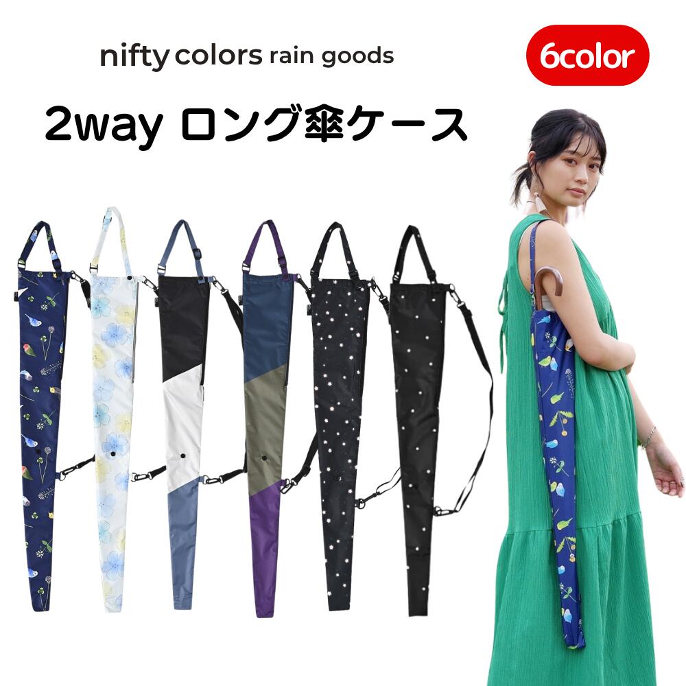 よく一緒に購入されている商品【お買い物マラソン期間8%オフクーポン発行中】800円【お買い物マラソン期間8%オフクーポン発行中】1,980円 商品名【傘ケース】2wayロング傘ケースサイズ本体長:約75cm 横幅:約12cm マチ:約1cm 重さ:約57g 折りたたみ時の縦幅:約16cm 折りたたみ時の横幅:約12cm 折りたたみ時の奥行:約2cm 紐の長さ:約42cm〜約92cm 対応傘サイズ:長傘全長約:87cm傘周囲約:19cmまで 折りたたみ傘全長約:25cm傘周囲約:19cmまでメーカーニフティカラーズ素材外側:ポリエステル100% 内側:ポリエステル93% ナイロン7% (はっ水・防水・ポリウレタン加工)生産地中国商品説明濡れた傘の持ち歩きや荷物が多く手が塞がっている時の長傘の持ち歩きに、両手がフリーになるショルダー付きの傘ケースです。 ロングタイプなので、長傘をハンズフリーで持ち運べ、傘が衣類について濡れるのを防ぎます。 長さ調節付きの持ち手に加え、別ショルダーも付属しているので、肩掛けや斜めがけができ両手を塞ぐことなく持ち運べます。 2段に折りたたむことにより、折りたたみ傘用のケースにもなり多機能にご使用いただけます。 生地の裏側にはポリウレタン加工をしているので防水効果が高く、一部に吸水布もついているので雨水を吸い取ります。 使わない時はコンパクトに折りたためるので持ち運びにも便利です。 対応傘サイズ:長傘・全長87cm、傘周囲19cmまで 折りたたみ傘:全長25cm、傘周囲19cmまで。注意事項撮影時のライティング、ご覧になっているモニター・PC環境により実際の商品と色味が異なって見える場合がございます。 ご了承の上お買い求め下さい。 類似商品はこちら【お買い物マラソン期間8%オフクーポン発行中】1,620円【お買い物マラソン期間8%オフクーポン発行中】1,800円【お買い物マラソン期間8%オフクーポン発行中】2,480円【お買い物マラソン期間8%オフクーポン発行中】800円【お買い物マラソン期間8%オフクーポン発行中】2,230円【お買い物マラソン期間8%オフクーポン発行中】3,080円【お買い物マラソン期間8%オフクーポン発行中】1,480円レインパンツ カーゴパンツ レインウェア 撥6,600円【お買い物マラソン期間8%オフクーポン発行中】2,800円新着商品はこちら2026/4/16レインパンツ カーゴパンツ レインウェア 撥6,600円2026/4/16アノラックパーカー 撥水 レインウェア レディ6,600円2026/4/16レインスカート カーゴスカート 撥水 バルーン6,050円再販商品はこちら2026/4/8【お買い物マラソン期間8%オフクーポン発行中】1,870円2026/4/3【お買い物マラソン期間8%オフクーポン発行中】5,680円2026/3/13【お買い物マラソン期間8%オフクーポン発行中】1,210円2026/04/16 更新 濡れた傘の持ち歩きや荷物が多く手が塞がっている時の長傘の持ち歩きに、両手がフリーになるショルダー付きの傘ケースです。 ロングタイプなので、長傘をハンズフリーで持ち運べ傘が衣類について濡れるのを防ぎます。 長さ調節付きの持ち手に加え、別ショルダーも付属しているので、肩掛けや斜めがけができ両手を塞ぐことなく持ち運べます。 色とりどりの小鳥たちと春の野草が一緒にデザインされています。 ペットとして人気のインコたちのかわいい仕草と表情に癒されるアイテムです。 ベース色はネイビーで大人っぽく、鮮やかな小鳥たちといつでも一緒にお出かけできます。水彩画のような柔らかなタッチの花柄。 淡いカラーの花も爽やかで雨の日の気分も晴れやかになれそう。 甘くなりすぎない花柄でカジュアルファッションにもおすすめです。カラーの切り替えになっているデザインは、使用時とたたんだ時に違った表情になります。 ネイビーにはカーキとパープルを合わせました。ブラックにはベージュとブルーを合わせ男性にも女性にも使いやすいカラーリングです。落ち着いたブラックのベースに、きらりと輝く星が散りばめられたデザインです。 シンプルながらも遊び心があるデザインなので、コーディネートのアクセントになります。 雨の日が楽しくなるアイテムです。ブラックのベースに小さな白い花柄が散らばった愛らしいデザインです。 さりげない花柄なのでシーンを選ばずお使いいただけます。