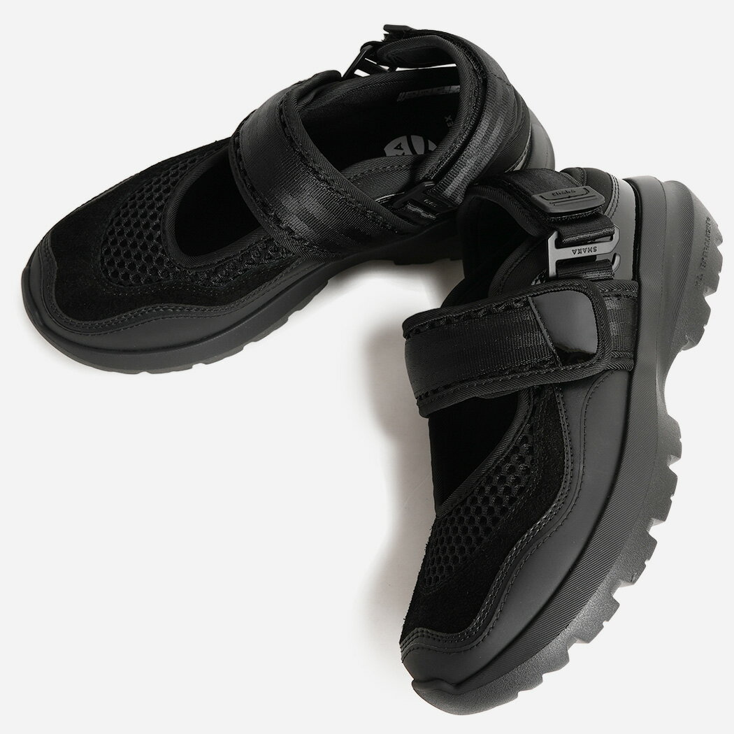 ITEM DETAIL 1920年代から現代に至るまで、フットウェアの歴史に名を刻むブランドへのリスペクトを込めつつ、革新的なデザインを追求し続ける『SHAKA(シャカ)』。実用的なアウトドア機能をベースに、都会の洗練されたムードを融合させた新感覚のシューズ「GREAT JOURNEY EXR(グレートジャーニー EXR)」が登場しました。今作は、トレンドのメリージェーンスタイルに、スニーカーのようなボリューム感を持たせた独創的なフォルムが目を惹きます。アッパーには通気性に優れたメッシュに加え、上品な光沢を放つパテントPU、しっとりとした質感のスエードやマイクロファイバーを絶妙にレイヤード。異素材が織りなす奥行きのある表情が、ハイファッションにも通じるモダンでハイテクな雰囲気を醸し出します。ソールには、Extralight社と共同開発した「第II世代EXRソール」を採用。厚みのある流線形のシルエットは、スタイルアップを叶えつつ、ランニングシューズさながらの驚異的な軽さとクッション性を実現しています。さらに、着脱可能なバックストラップを外せば、よりリラックスしたスライドサンダルとしても着用できる2WAY仕様。素足はもちろん、ソックスとのレイヤードでロングシーズン楽しめる、自由度の高い一足です。カジュアルを格上げし、装いにエッジを効かせる大人のためのスニーカーサンダル。少数入荷となりますので、是非この機会をお見逃しなく。 ITEM SPEC ・Brand / SHAKA ・Model / GREAT JOURNEY EXR ・Color / BLACK ・Fabric / メッシュ SIZE DETAILS ・普段履かれているサイズより0.5cm大きいサイズを選ばれると少し余裕を持って履く事ができ、普段履かれているサイズですとジャストで履くことができます。 ATTENTION 下記の内容を、ご注文前に以下内容を必ずご一読ください。 【商品について】 ・海外からの輸入時や国内からの輸送時に、商品ボックスに傷や凹みが生じてしまう場合がございます。 プレゼント等で箱の状態が気になる場合は、事前にご連絡お願い致します。 ・シール痕やマーキングがある場合や、タグ等が入っていない場合がございますのであらかじめご了承ください。 ・工場での製造行程による、接着剤のはみ出し、ほこり、糸ほつれ、しわ、歪み等は、返品交換時の送料は往復分お客様ご負担となります。商品によって、材質の性質上による、色むら、しわや傷、ステッチずれなどは、 同様に返品交換時の送料は往復分お客様ご負担となります。 【ご注文について】 ・実店舗や他サイトにて販売もしておりますので、売り違いがおこる可能性がございます。売り違いで在庫がない場合はキャンセル手続きをさせて頂きます。 ・ご注文の際に、送付先が海外への転送会社や詐欺報告のある住所など、当店が受付できないと判断したご注文に関しましては、キャンセル手続きをさせて頂きます。 ・ご注文頂いた後、当店から《注文完了メール》をお送りさせて頂きます。メールが届くまでは、前払い決済等の手続きはご遠慮お願いします。ショッピングサイト側から送られてくる、メールでのお支払いはお待ちください。 《注文完了メールをお送りした時点でのお取引開始となります。 ・15時までのご注文は即日発送の対応をさせて頂いておりますので、14時以降の発送先変更やキャンセルにつきましては、送料往復分お客様ご負担となります。また、《発送完了メール》が届いていなくても14時以降は送料が発生する可能性がございますので、ご了承頂きますようお願い致します。 【配送について】 ・当店は3980円以上のご注文で送料無料でお届けしております。3980円以下の注文に関しましては、下記の送料を頂戴しております。《全国一律660円 ※沖縄・離島・北海道は1650円≫ ・当店はエコ配送を推奨しております。ダンボールのご指定がない限り、プレゼントラッピング以外の全ての商品を原則、紙袋にて配送させて頂きます。また、プレゼント等で商品ボックスが気になる方は、事前にご連絡ください。ダンボール配送の指定をして頂いても、商品ボックスに傷や凹みがある場合がございますので、 予めご連絡頂きますようお願い致します。 ・配送業者は基本的に佐川急便ですが、地域によってヤマト運輸や、日本郵便になる場合がございますので、 配送業者の指定は原則、致しかねます。サイズが小さい商品に関しましては、ネコポスで配送することがあります。 メーカー希望小売価格はメーカーサイトに基づいて掲載しています