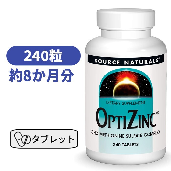 商品情報内容量240 Tablets / 240粒飲み方1日1粒を目安に摂取して下さい。主成分内容1粒当たり)亜鉛(メチオニン硫酸亜鉛錯体として)30 mg 272%銅(銅セバシン酸錯体として)300mcg 33%保存方法高温多湿を避けて保管してください。賞味期限パッケージに記載広告文責Red Bottle,+1-213-748-5118メーカー名Source Naturals区分海外製品/健康食品輸入者輸入者は購入者となります。ご注意本品は成人用です。医薬品ではなく、健康食品です。妊娠中や授乳中、服薬中、疾患のある方はご使用前にかかりつけの医師に相談してください。鮮度保持剤は食べられません。容器に入れたまま保管してください。お子様の手の届かない場所に保管してください。目安量を超えての摂取はお避け下さい。ソースナチュラルズ オプティジンク 亜鉛 240タブレット ミネラル 【Source Naturals Opti-Zinc 240 tablets】 健康な毎日をサポート 硫酸亜鉛メチオニン複合体栄養補助食品ベジタリアンの方にもおすすめ亜鉛は、男性特有の健康、リカバリー、しっかりとした体づくりに不可欠な微量元素です。また、体内の100を超えるさまざまなシステムにも必要です。 2
