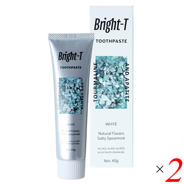 ブライトティー 薬用歯磨き粉は国産で100%自然由来の医薬部外品。 トルマリンの微粉末、塩、アパタイトで着色汚れを落としホワイトニング効果があります。 泡立ちも良く、ほんのり塩気のあるミントフレーバーで爽快感を得られます。 ピンクトルマリンの微粉末は、例えるならば、米粉や片栗粉などよりもさらにサラサラで驚くほど粒子が細かいものです。 それを天然の泡立ちで包み込んでおり、歯の表面を傷つけることはありません。 石油系合成界面活性剤、人工甘味料、防腐剤、合成着色料フリーなので小さなお子様にもお使いいただけます。 ◆大切な人に使ってもらうための歯磨き粉をつくる 今から30年以上も前、まだオールナチュラルという概念が浸透していなかった遠い昔に「家族が使えるものを作りたい」という思いから、最初の歯磨き粉が生まれました。 この made in Japanのプロダクトを、もっとたくさんの人に届けたいと、2020年にリブランドしBright-Tシリーズが誕生しました。 大切な人たちや自分にも使えて満足できるものを。妥協せずに本当に良いものを作りたいという想いが込められています。 歯を磨くことや顔を洗うことは、誰もが欠かせない毎日の習慣です。 使用頻度が高いアイテムだからこそ、お口の中の健康面、美容面に確かな効果を実感できるこのブライトティーをおすすめしたいと思っています。 歯磨き粉にトルマリン石を利用するという、創業者のユニークな視点と100%天然原料のこだわりを引き継ぎ、長く愛用していただけるブランドになれるよう丁寧に育てています。 ◆美容と健康を訴求するために医薬部外品・特許を取得 人は1日に何度も歯を磨きます。朝起きたとき、食事のあと、眠る前。 1日に3回磨いたとして、1年に1,100回以上の美容習慣。たかが歯磨き、されど歯磨き。 ハブラシや歯磨き粉1つで磨きやすさや口の中の爽快さが変わります 歯を磨くひと時が、汚れだけでなく眠さも疲れも磨き落とし、リフレッシュできる良い時間になりますように。 また、毎日の歯磨きで 歯と舌の汚れをしっかり落とし、口腔内を清潔に保つことで感染症や、長生きにもつながっていきます。 そのため、Bright-Tはトルマリン微粉末を配合した100%ナチュラルな薬用処方、医薬部外品を取得しました。 <Bright-T> トルマリン石・塩・ハーブを使用した100%天然成分で国産、医薬部外品のオーラルケア&石鹸ブランドです。 1.今から30年以上前に、創業者が自分の愛する家族のために開発した100%天然成分の医薬部外品、国産プロダクト。 2.2020年、ブランディングディレクター・コンサルタント佐藤香菜によってリブランディングされ、より多くの方に使っていただけるブランドへと生まれ変わりました。 3.医薬部外品のため「ホワイトニング」をしっかり訴求することが可能です。 ■商品名:Bright-T ブライトティー 薬用 歯磨き粉 医薬部外品 歯みがき ハミガキ ミント 国産 天然成分 薬用 子供 子ども ホワイトニング 送料無料 ■内容量:110g×2個セット ■全成分表示:薬用成分:塩化ナトリウム、甘草エキス、アラントイン 重質炭酸ナトリウム、ヒドロキシアパタイト、ケイ酸・ケイ酸アルミニウム焼成物、グリセリン、塩化ナトリウム、アラントイン、グリチルリチン酸ジカリウム、ラウロリルグルタミン酸ナトリウム、カラギーナン、キサンタンガム、ハッカ油、スペアミント油 ■使用方法:歯ブラシに適量をとって、優しく泡立てるようにご使用ください。ブライトティーの専用トゥースブラシを お使いになることをおすすめします。 ■メーカー或いは販売者:Bright-T ■区分:医薬部外品 ■製造国:日本【免責事項】 ※記載の賞味期限は製造日からの日数です。実際の期日についてはお問い合わせください。 ※自社サイトと在庫を共有しているためタイミングによっては欠品、お取り寄せ、キャンセルとなる場合がございます。 ※商品リニューアル等により、パッケージや商品内容がお届け商品と一部異なる場合がございます。 ※メール便はポスト投函です。代引きはご利用できません。厚み制限(3cm以下)があるため簡易包装となります。 外装ダメージについては免責とさせていただきます。