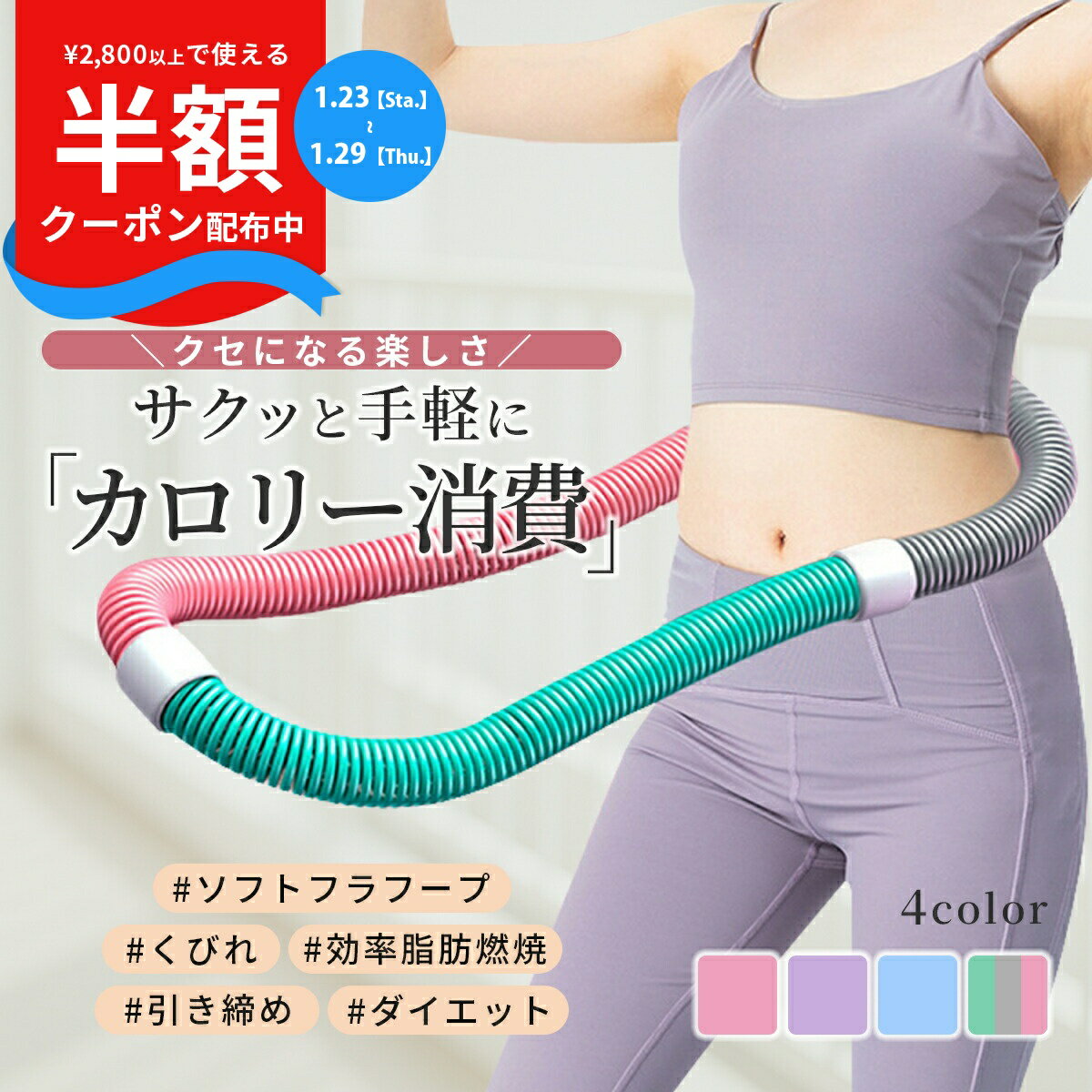 商品名称ソフト フラフープカラー01.ピンク02.パープル03.ブルー04.ミックス商品説明\クセになる楽しさ/サクッと手軽に「カロリー消費」#ソフトフラフープ#くびれ#効率脂肪燃焼#引き締め#ダイエット健康のためにも運動したい!でも、こんなお悩みありませんか?・運動したいけど人目が気になる・スキマ時間で効率よく運動したい・体のラインが気になってきた…【おうちで手軽に始める新・健康習慣】・空いた時間にサクッと・ 効率良くカロリー消費・出しっぱなしが続くコツ■Point01空いた時間を有効活用!サクッと稼ぐ消費カロリーぐにゃぐにゃと柔らかく、うまく回すには少しコツが必要な、このフラフープ。難しいからこそ短時間でも消費カロリーが稼げます◎くるっと丸めて収納も◎10分間のフラフープ(約100 kcal消費)は、約30分のウォーキングと同じくらいのカロリー消費が期待できるとも言われています。※効果には個人差があります。■Point02新感覚の負荷!!ずっしり重量が、しっかり効く普通のフラフープと違い、チューブには金属製のバネを内蔵。だから重さ約1.2kg。柔らかさに加えて重量感で、運動効果をより発揮!服やお肉が挟まらない完全密封コーティング■Point03三日坊主も卒業!?「出しっぱなし」が続くコツ!部屋に馴染むカラーだから、片付けなくてもOK。常に視界に入る場所に置けるから、忙しい日や気乗りしない日でも、自然と運動が習慣に。回数より「毎日」を目標に!!目標は回数ではなく、毎日触れること。 忙しい日は少しで大丈夫。「今日もできた」を積み重ねて、自分を褒めましょう。スタッフが実際に挑戦しました!(普通のフラフープも苦手)・新感覚でめっちゃ難しい!・でも少しでも回せると、上達したくなってつい何回もチャレンジしちゃいます!・翌日の筋肉痛を含めてお腹周りに効いてる感覚がクセになります。それでも…約1時間の練習で1分間連続で回せるようになりました!上達のコツはこちら↓●上手く回すためのPOINT●POINT1 両足を肩幅程度に開いた状態をキープPOINT2 フラフープは体の前でねじってスタンバイ。POINT3 腰の動きは、前後or左右に振るイメージキーワードフラフープ ダイエット 方法 フラフープ ダイエット用 フラフープ ダイエット 大人用 フラフープ ダイエット 初心者 フラフープ くびれ フラフープ 柔らかい ソフトフラフープ ダイエット用 ソフトフラフープ 最新 フラサークル 体幹 トレーニング 器具 体幹トレーニング グッズ PVC 折りたたみ式 エクササイズ 有酸素運動 室内器具 筋トレ グッズ 健康器具 腹筋器具 スポーツ 全身トレーニング 背中 脚 胸 ウエスト 省スペース ポータブル 室内運動器具 インナーマッスル トレーニング器具 インナーマッスル 楽 トレ インナーマッスル 鍛える 器具 運動不足 1.2kg 1.3kg ボディメイク ボディライン 痩身 隙間時間 スキマ時間 カロリー消費 お腹 引き締め商品名称ソフト フラフープカラー01.ピンク02.パープル03.ブルー04.ミックス商品説明\クセになる楽しさ/サクッと手軽に「カロリー消費」#ソフトフラフープ#くびれ#効率脂肪燃焼#引き締め#ダイエット健康のためにも運動したい!でも、こんなお悩みありませんか?・運動したいけど人目が気になる・スキマ時間で効率よく運動したい・体のラインが気になってきた…【おうちで手軽に始める新・健康習慣】・空いた時間にサクッと・ 効率良くカロリー消費・出しっぱなしが続くコツ■Point01空いた時間を有効活用!サクッと稼ぐ消費カロリーぐにゃぐにゃと柔らかく、うまく回すには少しコツが必要な、このフラフープ。難しいからこそ短時間でも消費カロリーが稼げます◎くるっと丸めて収納も◎10分間のフラフープ(約100 kcal消費)は、約30分のウォーキングと同じくらいのカロリー消費が期待できるとも言われています。※効果には個人差があります。■Point02新感覚の負荷!!ずっしり重量が、しっかり効く普通のフラフープと違い、チューブには金属製のバネを内蔵。だから重さ約1.2kg。柔らかさに加えて重量感で、運動効果をより発揮!服やお肉が挟まらない完全密封コーティング■Point03三日坊主も卒業!?「出しっぱなし」が続くコツ!部屋に馴染むカラーだから、片付けなくてもOK。常に視界に入る場所に置けるから、忙しい日や気乗りしない日でも、自然と運動が習慣に。回数より「毎日」を目標に!!目標は回数ではなく、毎日触れること。 忙しい日は少しで大丈夫。「今日もできた」を積み重ねて、自分を褒めましょう。スタッフが実際に挑戦しました!(普通のフラフープも苦手)・新感覚でめっちゃ難しい!・でも少しでも回せると、上達したくなってつい何回もチャレンジしちゃいます!・翌日の筋肉痛を含めてお腹周りに効いてる感覚がクセになります。それでも…約1時間の練習で1分間連続で回せるようになりました!上達のコツはこちら↓●上手く回すためのPOINT●POINT1 両足を肩幅程度に開いた状態をキープPOINT2 フラフープは体の前でねじってスタンバイ。POINT3 腰の動きは、前