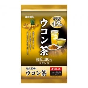 オリヒロ ウコン茶 お徳用48包 クルクミンを豊富に含む秋ウコンを焙煎して飲みやすく仕上げた100%ウコン茶。お酒をよく召し上がる方などに。 発売元:オリヒロ 内容量:72g(1.5g×48包) ウコンの根茎を遠赤外焙煎加工により飲みやすく仕上げました。 「オリヒロ ウコン茶 お徳用48包」は、秋ウコンの根茎を原料として、遠赤外焙煎で飲みやすく仕上げたウコン茶です。秋ウコンは、ターメリックとも呼ばれ、ポリフェノールの一種のクルクミンを豊富に含んでいます。 お酒をよく召し上がる方の健康サポートや毎日の健康維持などに「オリヒロ ウコン茶 お徳用48包」をご利用ください。お徳用48包入りです。 オリヒロ ウコン茶 お徳用48包 のお召し上がり方 急須使用の場合 温めた急須にティーバッグを1つ入れ沸騰したお湯を注ぎ、1煎目は30〜60秒、2煎目以降は少し時間をおいてからお好みの濃さでお召し上がりください。 煮出してご利用の場合 煮出す場合にはよく沸騰している500ml前後の熱湯にティーバッグを1つ入れ、2〜3分間を目安に弱火で煮出してください。ほどよい色と良い香りが出ましたら火を止めてポットで保温するか冷蔵庫で冷やしてお召し上がりください。煮出す時間はお茶の色や香りでお好みによって調節してください。 原材料 秋ウコン 広告文責:いいもの健康有限会社 電話番号: 042-498-2113